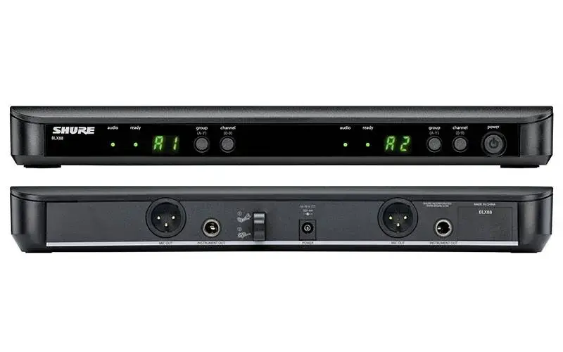 Двухканальный ресивер BLX88 из комплекта Shure BLX288E/PG58 M17 обеспечивает кристально чистый звук и усовершенствованную автоматическую настройку. Интуитивно понятное управление и быстрое сканирование, которое доступно с помощью всего одной кнопки, оно позволяет моментально выбрать свободные частоты с наилучшими параметрами. Внутренняя антенна управляется встроенным микропроцессором. На корпусе расположены светодиодные индикаторы, которые показывают наличие сигнала и клиппирование. ЖК-дисплеи отображает рабочие частоты обоих каналов. Ресивер оснащен четырьмя выходами: два на разъемах XLR и два – на 1/4" TS Jack.