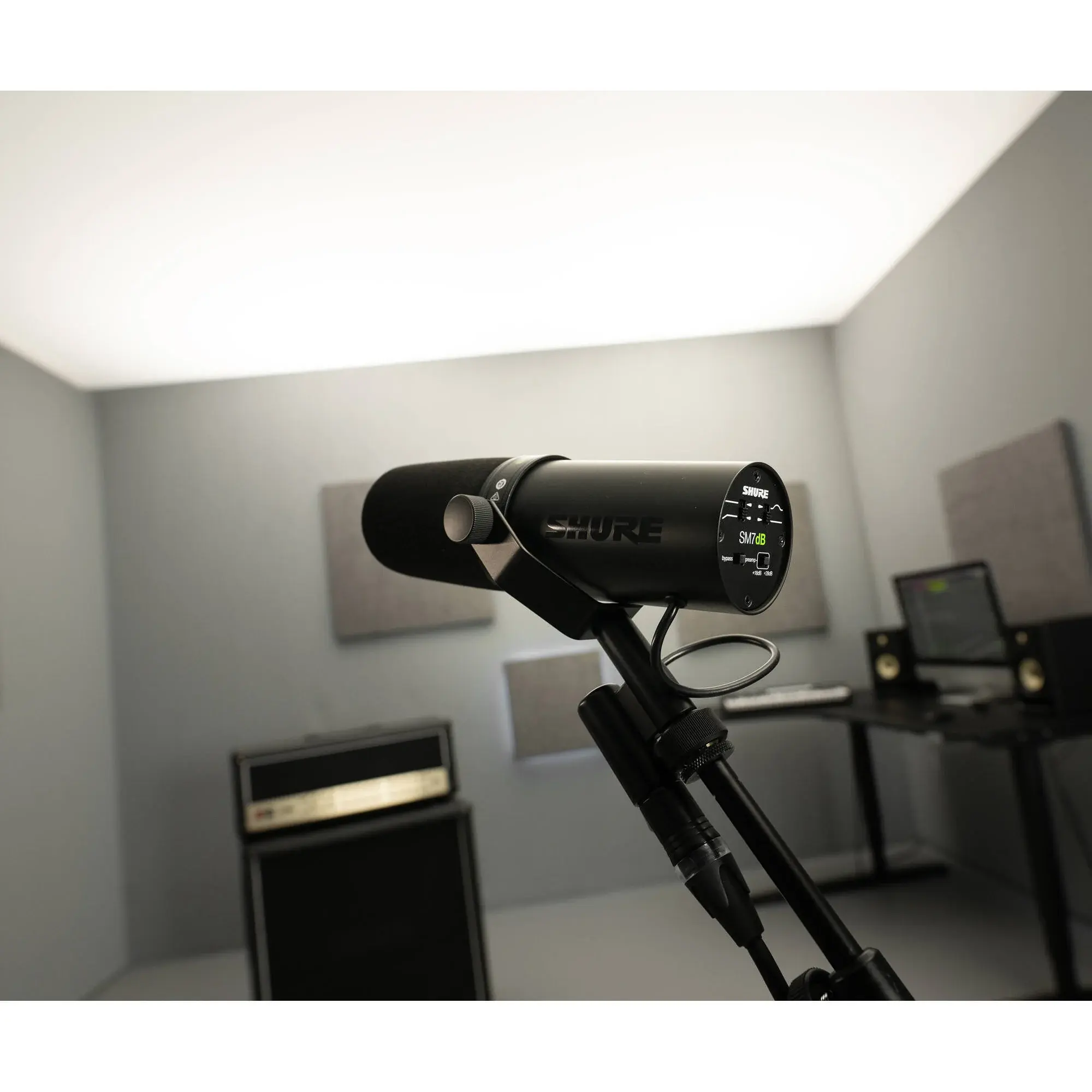 Shure SM 7 dB – это настольный микрофон динамического типа с высочайшим уровнем качества звука, стильным дизайном и эргономичной конструкцией. Модель является яркой представительницей нового поколения динамических устройств и совместима с абсолютно любыми разъемами XLR. Это обстоятельство значительно облегчает процесс записи вокала на различные записывающие устройства для подкастеров, ведущих и музыкантов. Особенности: динамический микрофон с настольной/подвесной конфигурацией; плоская широкополосная АЧХ в пределах 50-20000 Гц; встроенный предусилитель с переключением между +18 и +28 дБ; тумблер переключения обхода True Bypass; фантомное питание +48 В для предусилителя; кардиоидная полярность: спад НЧ и акцентирование СЧ; новейшая технология подавления электромагнитных шумов; внутренняя противоударная изоляция подвески; поп-фильтр в виде съемной ветрозащиты в комплекте; крепление хомута за счет невыпадающей гайки подставки; прочный корпус из стали и алюминия; Элегантная черная расцветка. В основу конструкции SM 7 dB заложен динамический капсюль с кардиоидной диаграммой направленности. За счет этого можно легко отделить именно голос, подавляя внеосевые звуки и уменьшая проблемы с обратной связью. Кардиоида гарантирует спад низких частот и эффективное управление средними. Помимо этого, встроенная противоударная изоляция на пневматической подвеске внутри корпуса нейтрализует передачу механических шумов. А прочное крепление хомута делает монтаж более надежным и легким. Диапазон частот, воспроизводимых микрофоном, имеет широкие границы в 50 и 20 000 Гц. Всё это делает модель идеальным вариантом для неидеальных условий подкастинга! В SM 7 dB встроен усилитель, разработанный специалистами компании Shure именно для этой модели. Его выход совместим со всеми интерфейсами XLR, питание он получает фантомно +48 В. Данный предусилитель настраивается в трех вариантах: на +18 дБ, +28 дБ или же с отключением от схемы посредством тумблера True Bypass. Еще одним преимуществом динамического микрофона SM 7 dB является улучшенное подавление электромагнитных шумов. Данная технология оптимизирована для защиты, в первую очередь, от широкополосных помех, излучаемых практически всеми мониторами современных ПК. Микрофон заключен в элегантный обтекаемый корпус, изготовленный из стали и алюминия. Это сочетание материалов делает конструкцию легкой и прочной одновременно. А черное порошковое покрытие предохраняет корпус от царапин и потертостей. В комплект поставки входит съемная ветрозащита для более детализированной записи на близком расстоянии (без шумов, взрывных звуков и пр.). Комплектация: микрофон; документация.