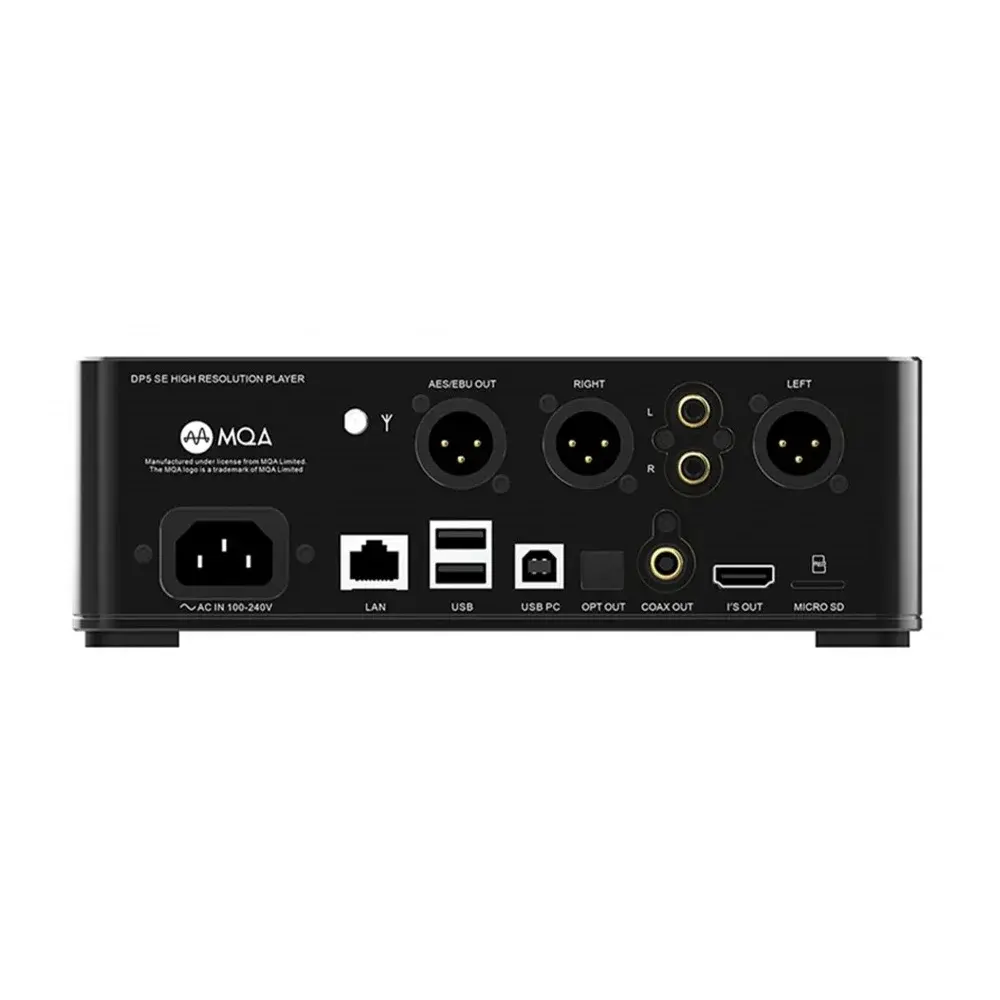 Схема цифроаналогового преобразования DP5SE основана на микросхеме ЦАП ESS ES9039Q2M, что позволяет ей поддерживать 32-битные потоки PCM с частотой 768 кГц и встроенные DSD вплоть до DSD512 для высококачественного воспроизведения звука. Он также может похвастаться отличной производительностью: THD+N составляет всего 0,00009%, SNR и динамическим диапазоном 126 дБ, что позволяет напрямую подключать наушники, активные колонки, предусилители или встроенные усилители. Порт USB-B (совместимый с OTG) можно подключить непосредственно к компьютеру, смартфону или планшету, чтобы использовать DP5 в качестве USB-ЦАП.
