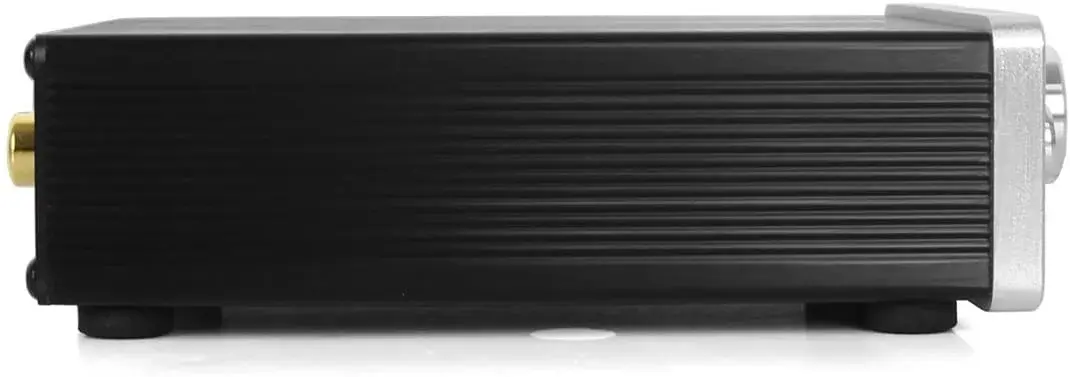Модель выполнена из алюминия и металла. Устройство имеет оптический и коаксиальный входы, с помощью которых возможно подключение усилителя к компьютеру, ЖК-телевизору, DVD-проигрывателю и другому оборудованию.