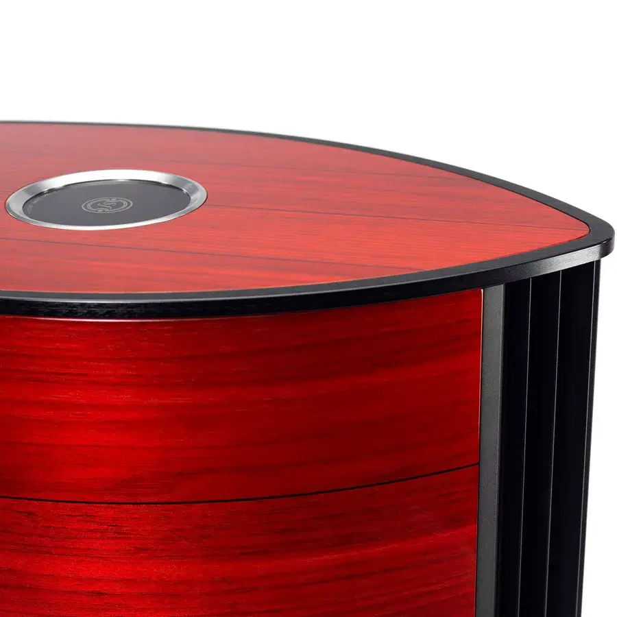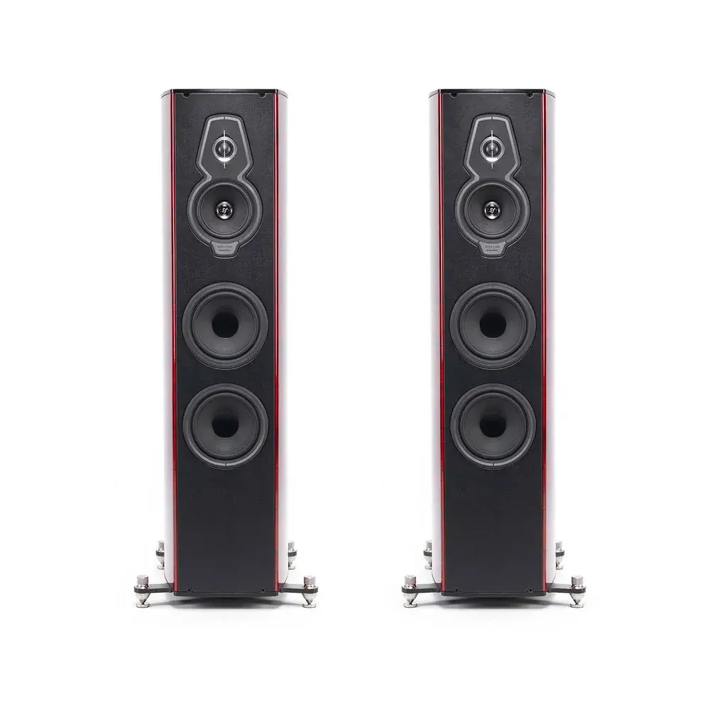 Ножки-конусы спикера, получившие название “Silent Spikes” («бесшумные шипы»), крепятся к выступающим частям его основания через эластомер-демпфер. Благодаря такой 3-слойной структуре (металл/эластомер/металлический шип, технология Zero Vibration Transmission) удается свести к минимуму вибрации, передающиеся от колонки к полу. Отдельного внимания заслуживает роскошная отделка Sonus Faber Serafino Tradition — шпон венге с эффектными кленовыми вставками, алюминием серебристого цвета и кофейной кожей или красный орех, черный алюминий и кожа черного цвета.