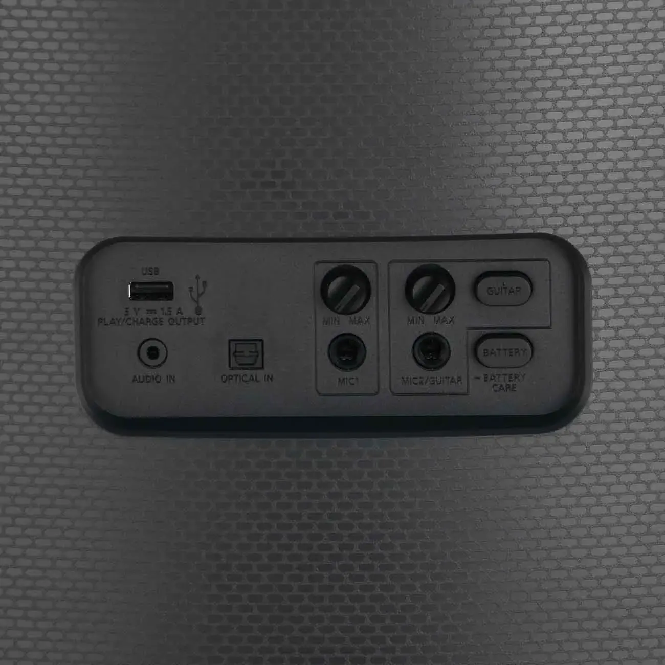 Колонка XV900 оснащена несколькими входными гнездами, что позволяет подключать микрофоны или даже гитару.