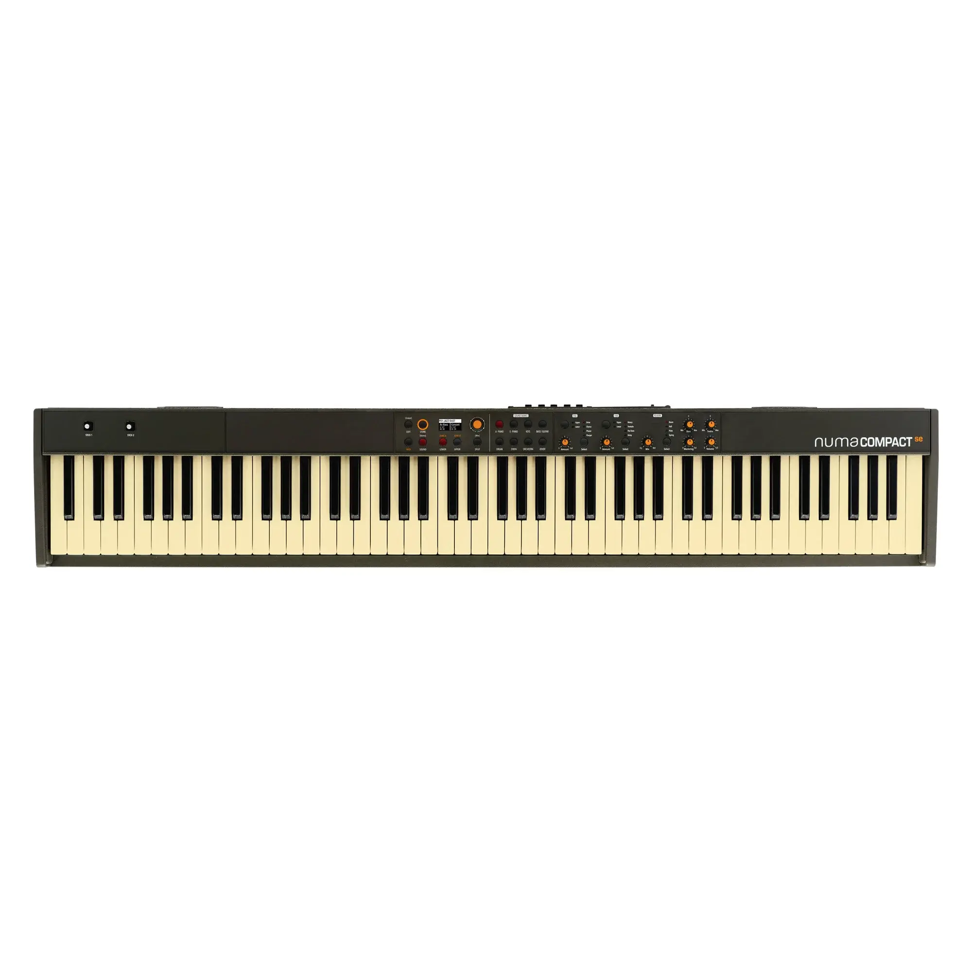 Studiologic Numa Compact SE - компактное цифровое пианино со встроенными динамиками. Studiologic Numa Compact SE отличается от Studiologic Numa Compact X SE отсутствием 9 дополнительных ползунков, позволяющих управлять параметрами органа. Модель получила 88-клавишную полувзвешенную клавиатуру, 200-голосную полифонию, 148 звуков и 4 специальных звуковых движка. Пианино имеет 2 полнодиапазонных встроенных динамика и возможность использовать до 6 эффектов одновременно.