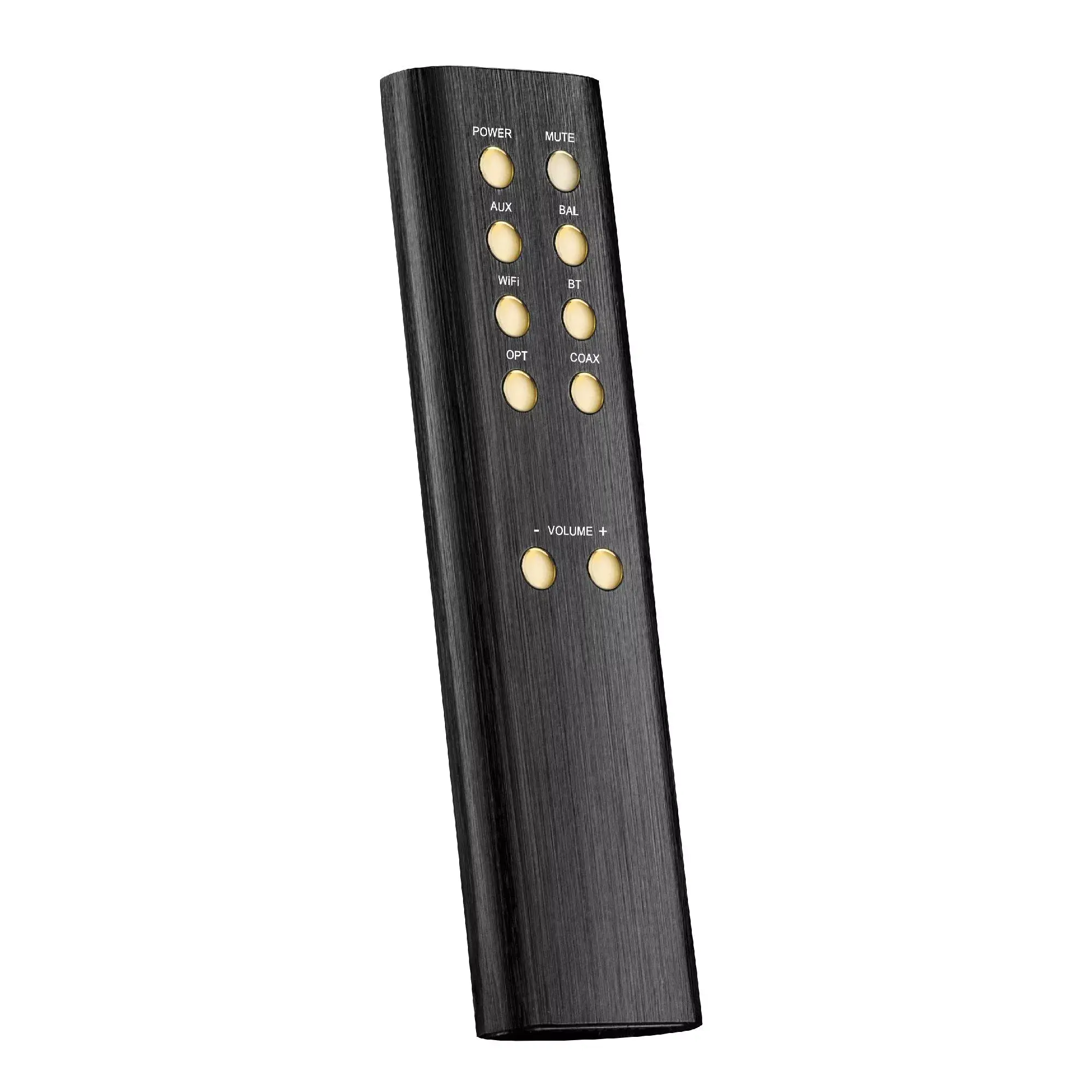 Тонкий и высококачественный пульт, для дистанционного управления системой H8. Изготовлен из высококачественного алюминия, с бронзово-золотыми кнопками. Многорежимная передача управляется одной кнопкой, что делает динамик пригодным для прослушивания на большом расстоянии.
