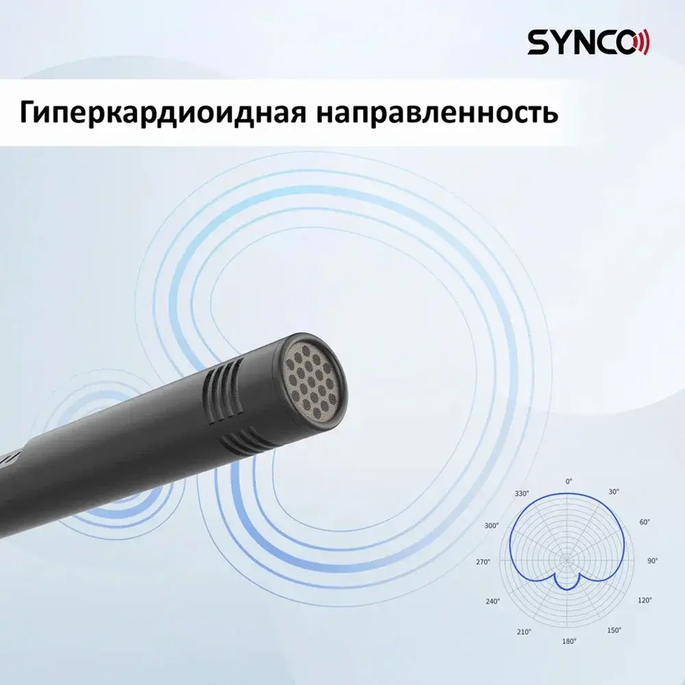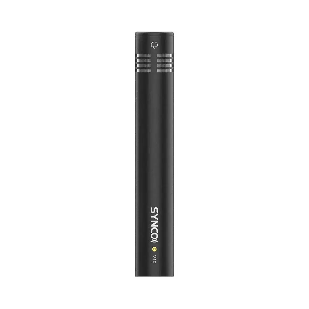 SYNCO V10 оснащен конденсаторным микрофоном с небольшой диафрагмой и гиперкардиоидной направленностью. Он четко улавливает самые тонкие сигналы и эффективно подавляет внеосевые шумы, такие как неожиданный инструментальный звук, фон помещения и эхо, поэтому он хорошо подходит для записи живых выступлений.