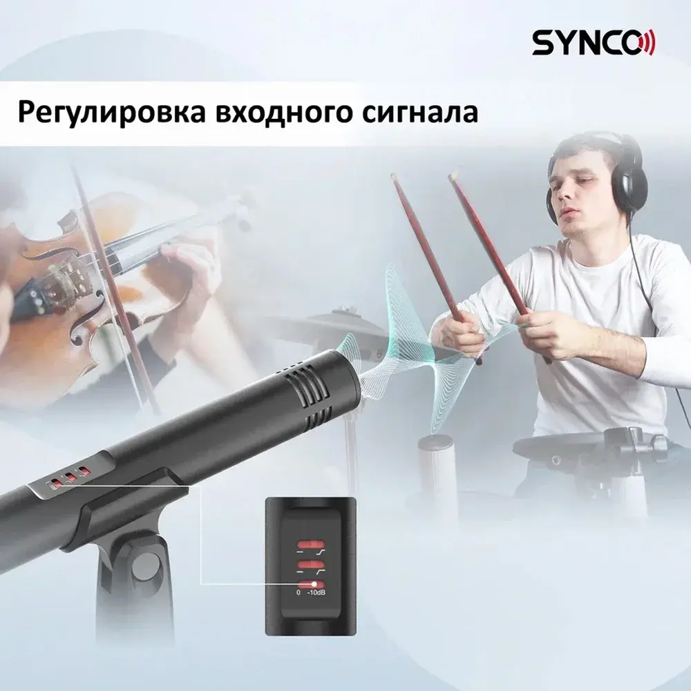 Synco CMic-V10 - это конденсаторный микрофон с малой диафрагмой, предназначенный для захвата звуков музыкальных инструментов и вокала. Гиперкардиоидная направленность обеспечивает высокий уровень усиления и подавление внеосевых шумов. Функции, такие как частотная характеристика, усиление высоких частот, затухание и фильтр верхних частот, работают гибко, чтобы конденсаторный микрофон хорошо подходил для различных приложений.