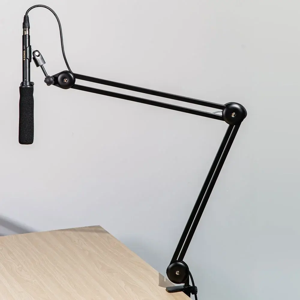 SYNCO MA38 – настольная подставка-пантограф для микрофона. Предназначена для установки микрофона в тесных условиях, например, в аппаратных комнатах радиостанций, в небольших студиях или в домашних условиях. Крепление к поверхности осуществляется посредством С- держателя. Подставка способна выдержать вес практически любого микрофона, максимальная нагрузка до 1.1 кг. Система пантографа состоит из двух складных частей по 450 мм каждая, что обеспечивает регулировку до 900 мм.