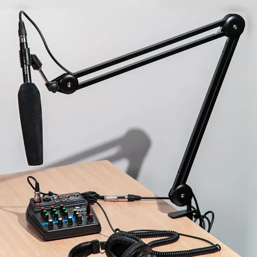 Подставка не займет много места, не будет мешать другим настольным стойкам и держателям микрофонов. Ее можно закрепить на столе или другой поверхности толщиной до 60 мм. Устойчивая конструкция держит микрофон крепко и надежно за счет высокопрочного алюминиевого сплава и надежных шарниров. В комплекте адаптер для крепления микрофона.