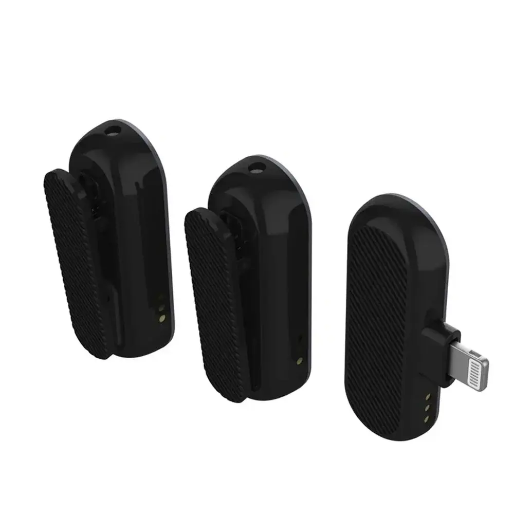 Состоит из двух передатчиков, одного приемника и удобного футляра для подзарядки. Подключение в одно касание. Устойчивый сигнал - 150 метров в прямой видимости и 50 метров с препятствиями. Регулировка громкости и отключение звука. Система активного шумоподавления. Работа до 5 часов без подзарядки.
