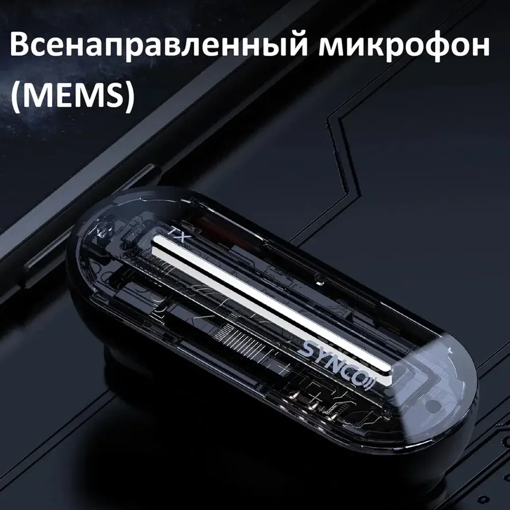 Технология активного шумоподавления SYNCO Acoustic Noise Canceling устраняет низкочастотный шум, сохраняя звук насыщенным и чистым без искажения тонов с глубокими басами, стабильными средними и высокими частотами.