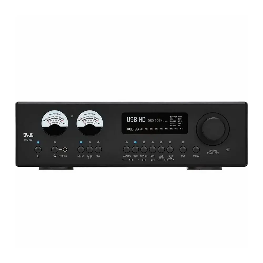 Т+А DAC 200 получил премиальный midi-дизайн и приятную стрелочную индикацию. Т+А DAC 200 способен работать с файлами с ультравысокими разрешениями (DSD 1024 и PCM 32 бит / 768 кГц).