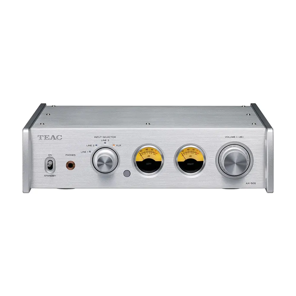 TEAC AX-505 построен по балансной схеме по всему тракту воспроизведения. Модель получила алюминиевый корпус с алюминиевыми ручками и крупными позолоченными винтовыми клеммами для акустического кабеля. Стрелочные индикаторы уровня оснащены четырехступенчатой схемой диммирования подсветки.