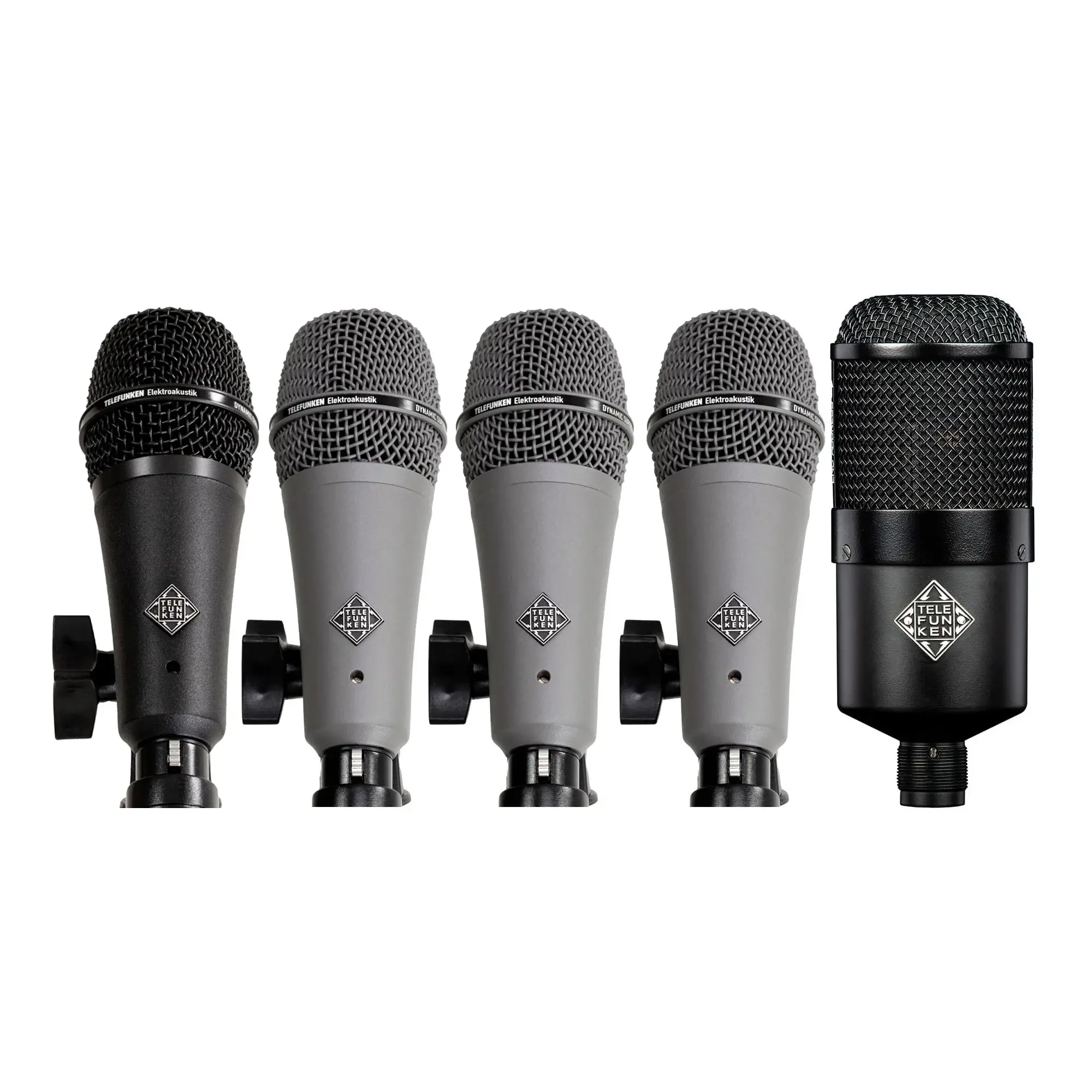 Telefunken объединили три уникальных голоса — M80-SHB, M81-SH и M82, создав комплекты динамических микрофонов для подзвучки барабанов DD4 и DD5. M82 предназначен для бас-бочки, M81-SH — для томов, а для подзвучки малого барабана лучше всего подходит M80-SHB. Универсальность и высочайшее качество звука, удостоенное награды TEC Award, позволяют использовать эти комплекты микрофонов как на живых концертах, так и в студиях звукозаписи.