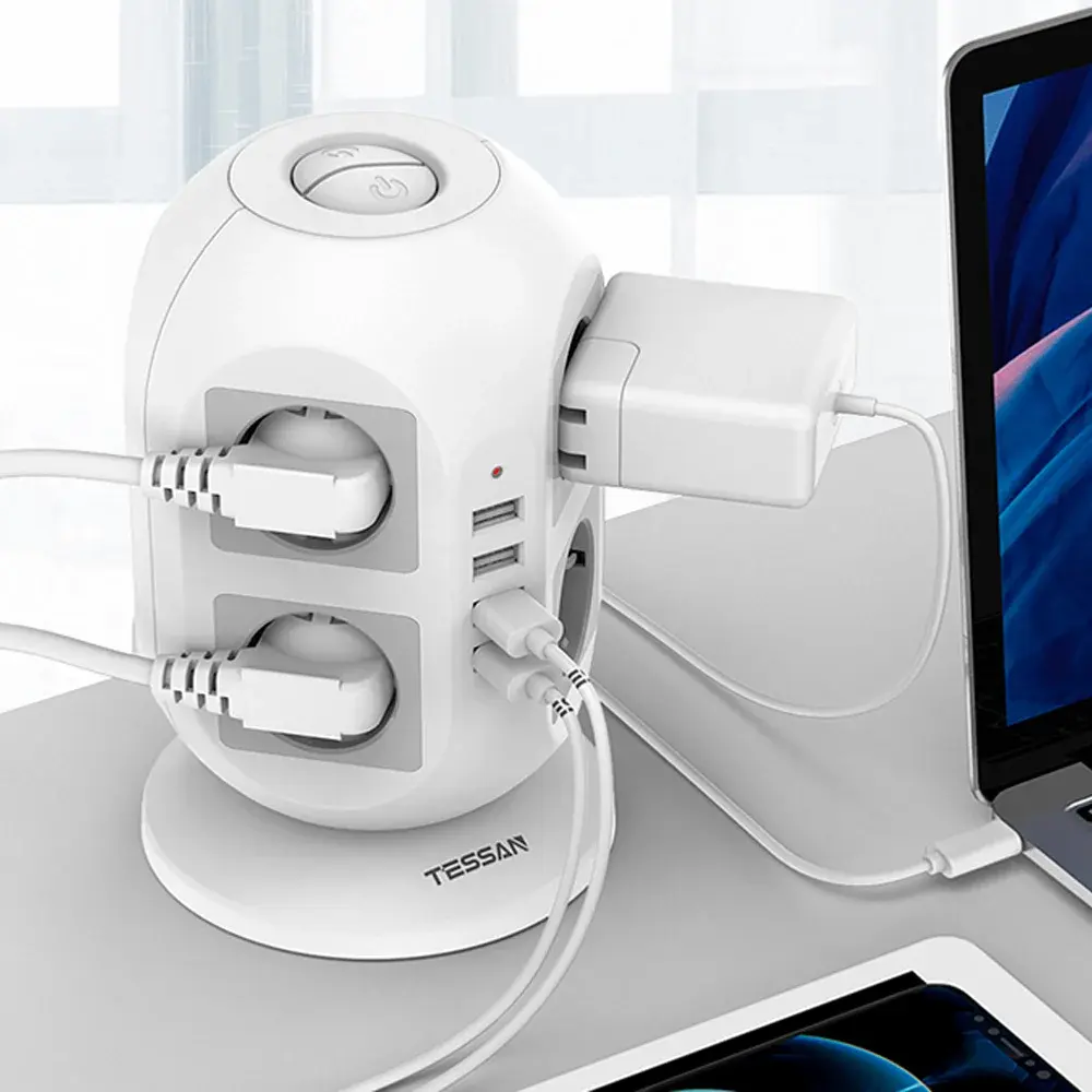 Сетевой фильтр "12 в 1" - с 8 розетками 220В, 4 USB портами и двумя кнопками питания. Компактный дизайн. LED индикатор. Защита от перегрузки и скачков напряжения. Огнеупорный материал корпуса. Высококачественный медный кабель 2 метра. Надежные плотные разъёмы.
