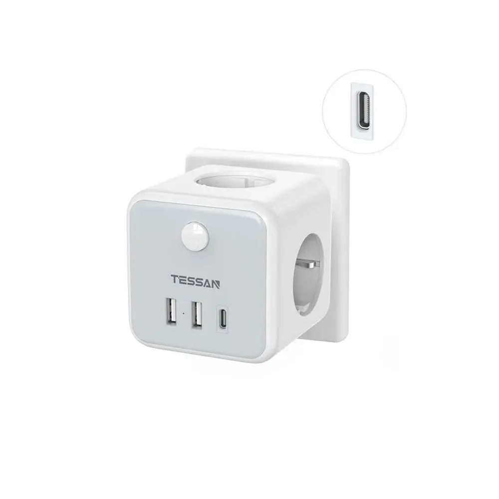 Сетевой фильтр с 3 розетками 220В, 2 USB и 1 USB-C портами и кнопкой питания. Эргономичный дизайн. LED индикатор. Огнеупорный материал корпуса. Надежные плотные разъёмы. Шторки защиты от детей.