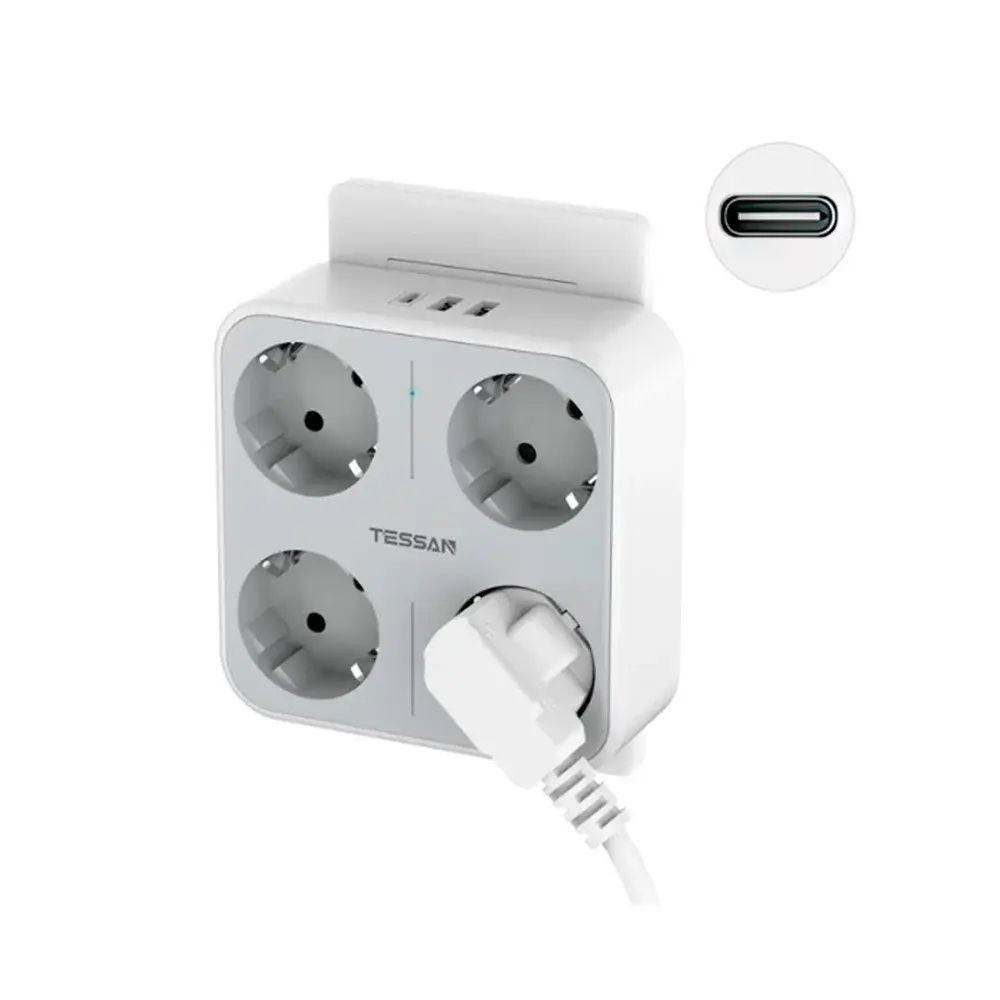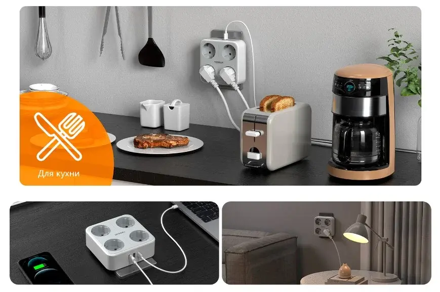 Сетевой фильтр с 4 розетками 220В, 2 USB и 1 USB-C портами и кнопкой питания. Эргономичный дизайн. LED индикатор. Огнеупорный материал корпуса. Надежные плотные разъёмы.