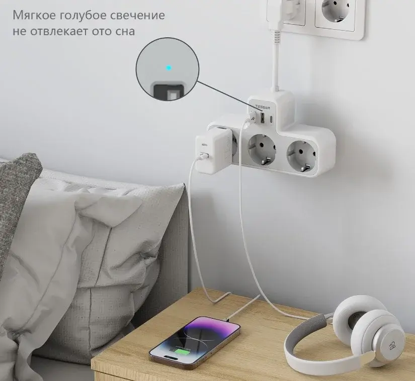 встроенная функция Smart IC, за счет которой сетевой фильтр автоматически распознает подключенное устройство и подает оптимальный ток питания для быстрой и безопасной зарядки;