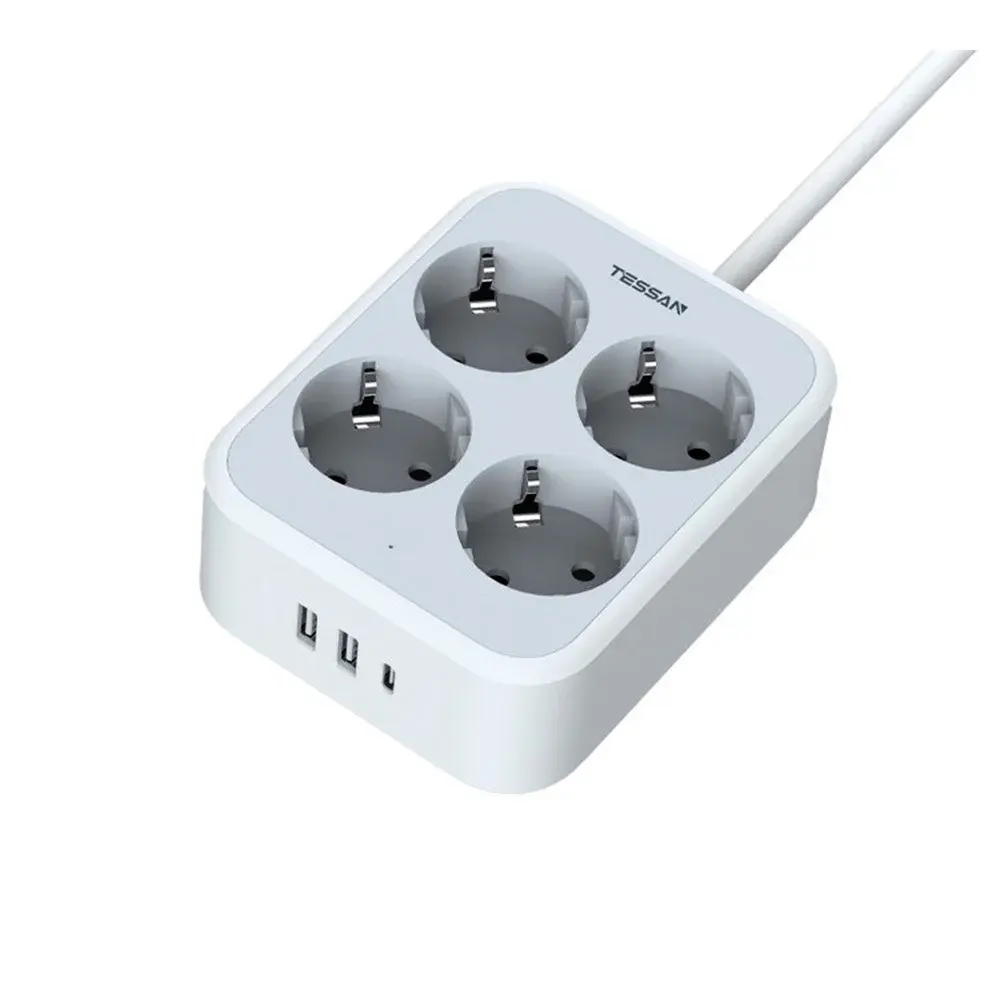 Сетевой фильтр с 4 розетками 220 В, 2 USB-A и 1 USB-C портами и кнопкой питания. Эргономичный дизайн. LED индикатор. Огнеупорный материал корпуса. Высококачественный медный кабель. Надёжные плотные разъёмы. Шторки защиты от детей.