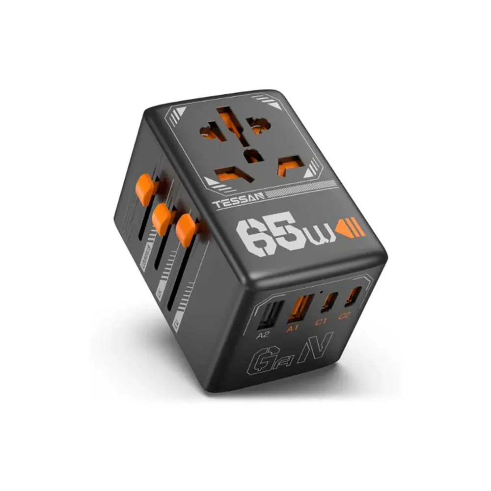 Сетевой фильтр (тревел-адаптер) с неск вар 100-250В, 2 USB и 2 USB-C портами. Эргономичный дизайн. Огнеупорный материал корпуса. Надежные плотные разъёмы.