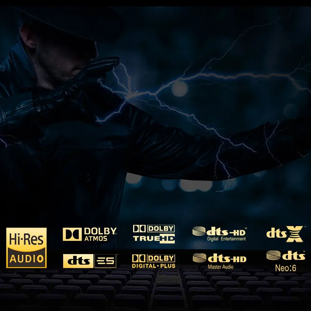 форматы: Dolby Atmos,Dolby TrueHD,Dolby Digital,Dolby Digital Plus,Dolby Mat,etc. Support DTS:X、DTS Master、DTS HI RES、DTS ES、DTS NEO6;