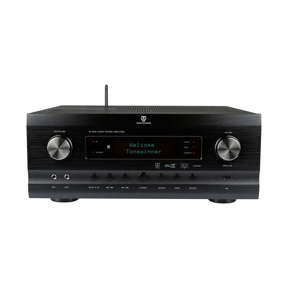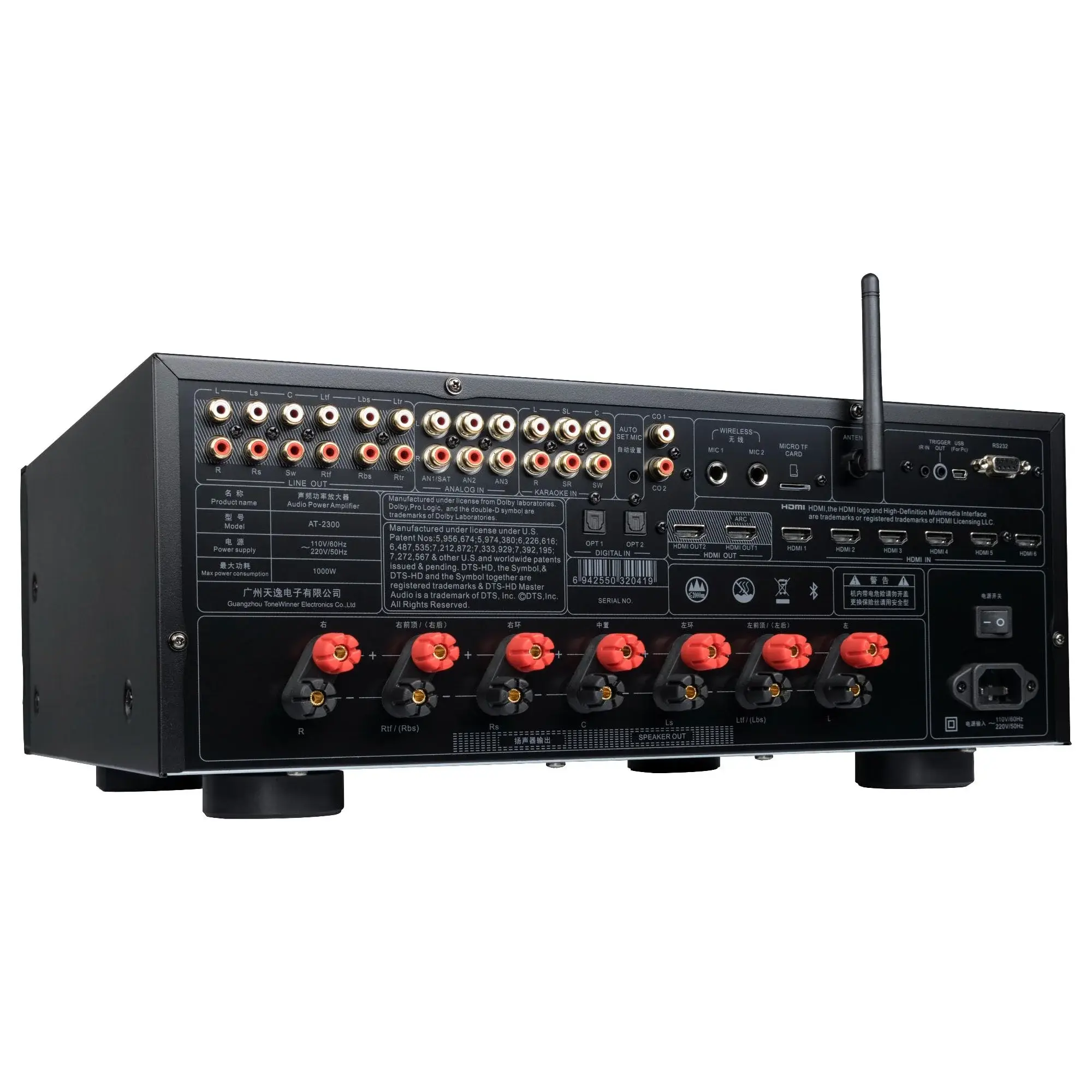 AT-2300 - это AV-ресивер для домашнего кинотеатра. Он сочетается с системой домашнего кинотеатра, персональным музыкальным центром и профессиональной караоке-системой. Первая профессиональная 5.1.2-канальная караоке-система с поддержкой DTS: X. Обратный канал ARC Voice Back позволяет любому Smart TV превратиться в машина для пения. Это высококачественный центр, который может удовлетворить семейные развлечения.