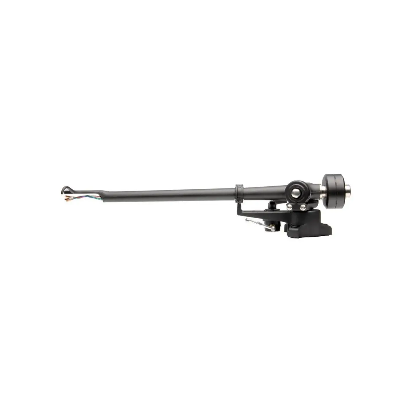 Тяжелое основание, в котором 2 пластины из черного акрил-карбоната разделены полированной алюминиевой прослойкой, покоится на регулируемых по высоте опорах-шипах. Ножки под шипами позволяют выбрать между жесткой или мягкой установкой проигрывателя.