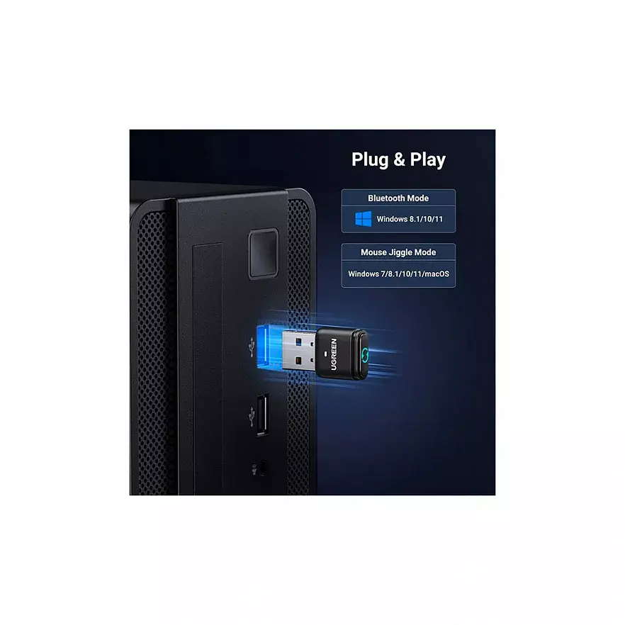 Ugreen BT301 (35994) — универсальный Bluetooth-адаптер, сочетающий функции Bluetooth-донгла и имитатора активности мыши (mouse jiggler). Это устройство добавляет Bluetooth-функциональность к ПК или ноутбукам, у которых её нет или она повреждена, и позволяет подключать беспроводные устройства, такие как клавиатуры, мыши, наушники и игровые контроллеры. Совместимость с Bluetooth 5.2 и более старыми версиями обеспечивает стабильную и надежную передачу данных.