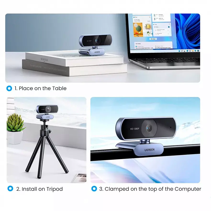Веб-камера с разрешением Full HD 1080P обеспечивает четкое и детализированное изображение благодаря объективу с разрешением 2 МП и частотой записи видео 30 кадров в секунду. Широкоугольный объектив с углом обзора 85° позволяет захватывать больше участников кадра, а встроенный шарнир с поддержкой вращения на 360° обеспечивает удобную настройку положения камеры.