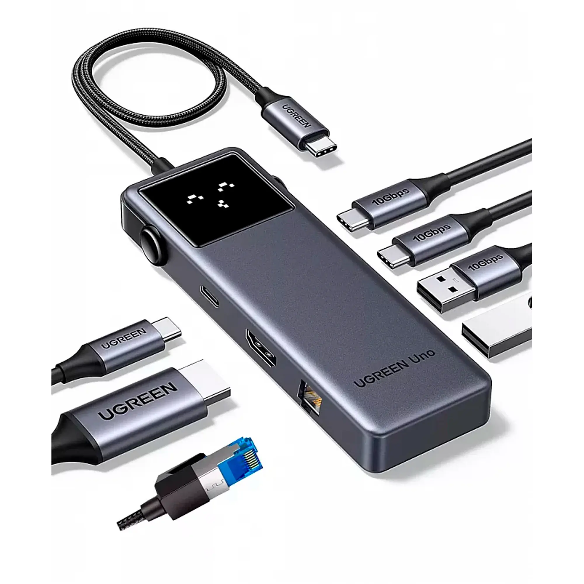 Это компактное и мощное решение позволяет подключать сразу несколько устройств через один порт: вы получаете изображение с кристальной чёткостью благодаря поддержке HDMI 4K при 60 Гц, проводной интернет через порт RJ45 со скоростью до 1000 Мбит/с, а также удобную работу с накопителями и периферией через два порта USB-A и высокоскоростной USB-C с передачей данных до 5 Гбит/с.