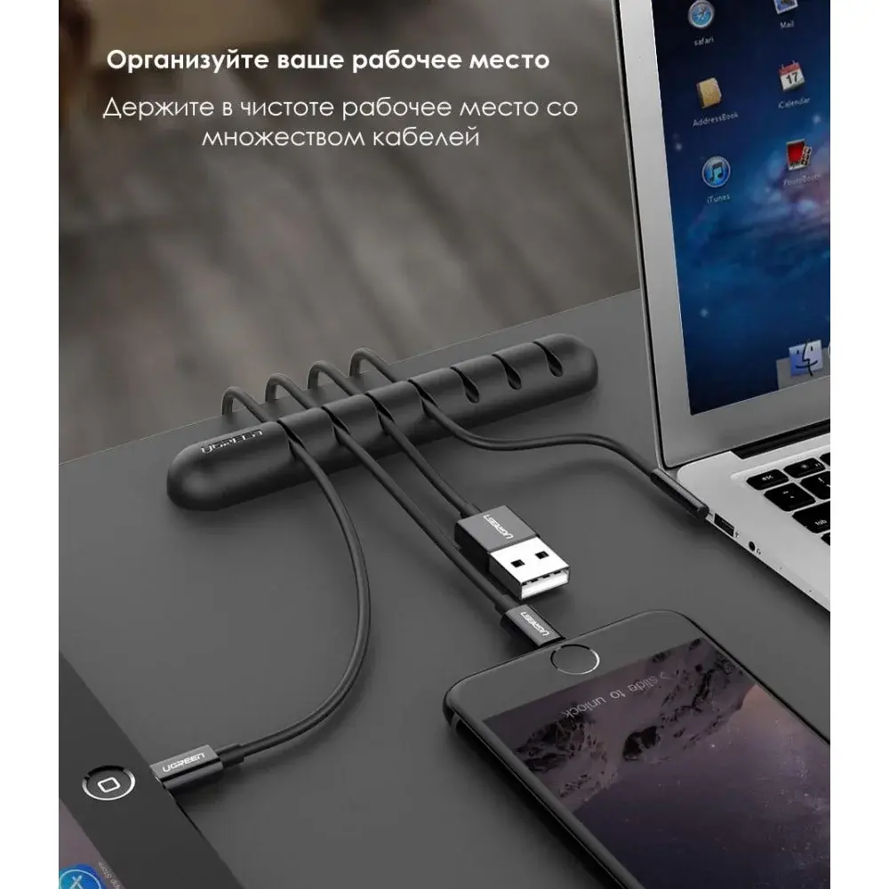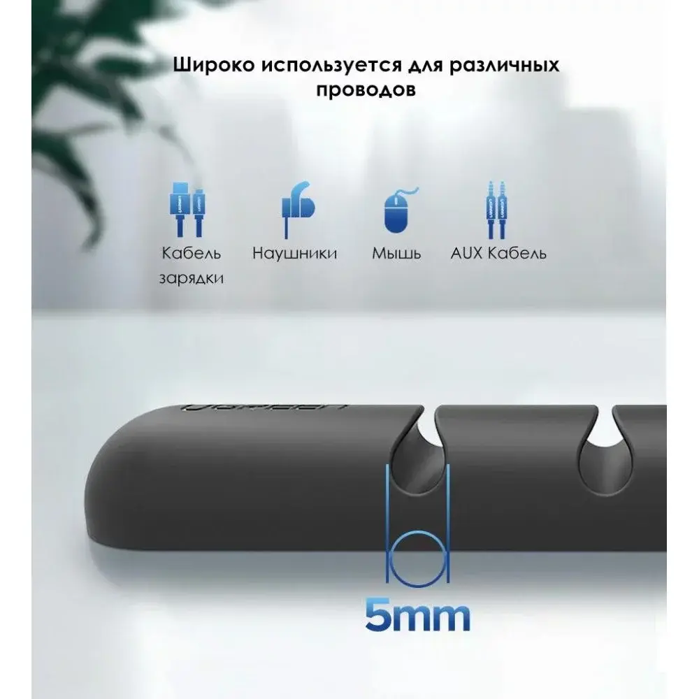 Органайзер-держатель для кабелей Ugreen предназначен для организации порядка на вашем столе дома и в офисе. Он может держать все ваши кабели в пределах досягаемости руки во время использования, а также оставаться на месте, когда он отключен. Вы никогда не потеряете свой кабель на полу или за столом. Таким образом вы сможете увеличить срок службы кабелей и сэкономить времени на их поиск.