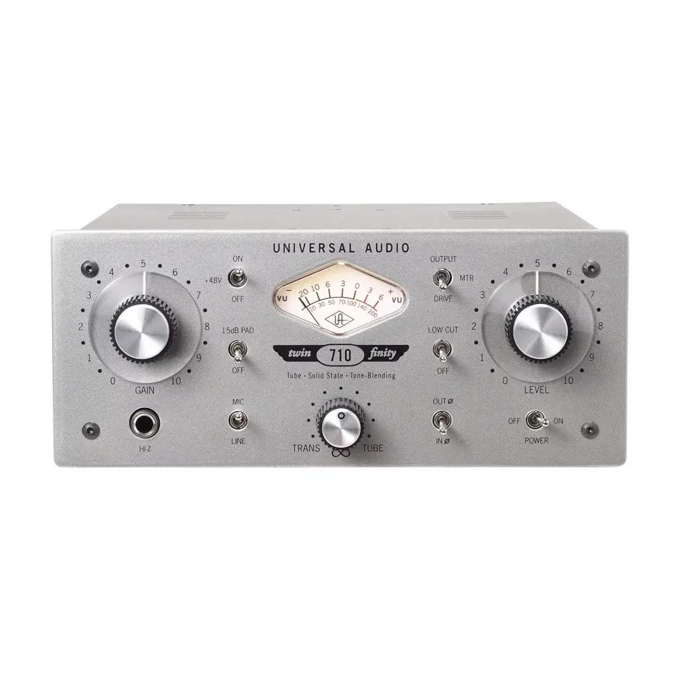 Universal Audio 710 Twin-Finity - ламповый и полупроводниковый микрофонно-инструментальный предусилитель. Как и другие предусилители, Universal Audio 710 имеет два этапа контроля усиления, что позволяет радикально изменять количество окраса и искажений в звучании и дает возможность получить максимум из выходного сигнала.