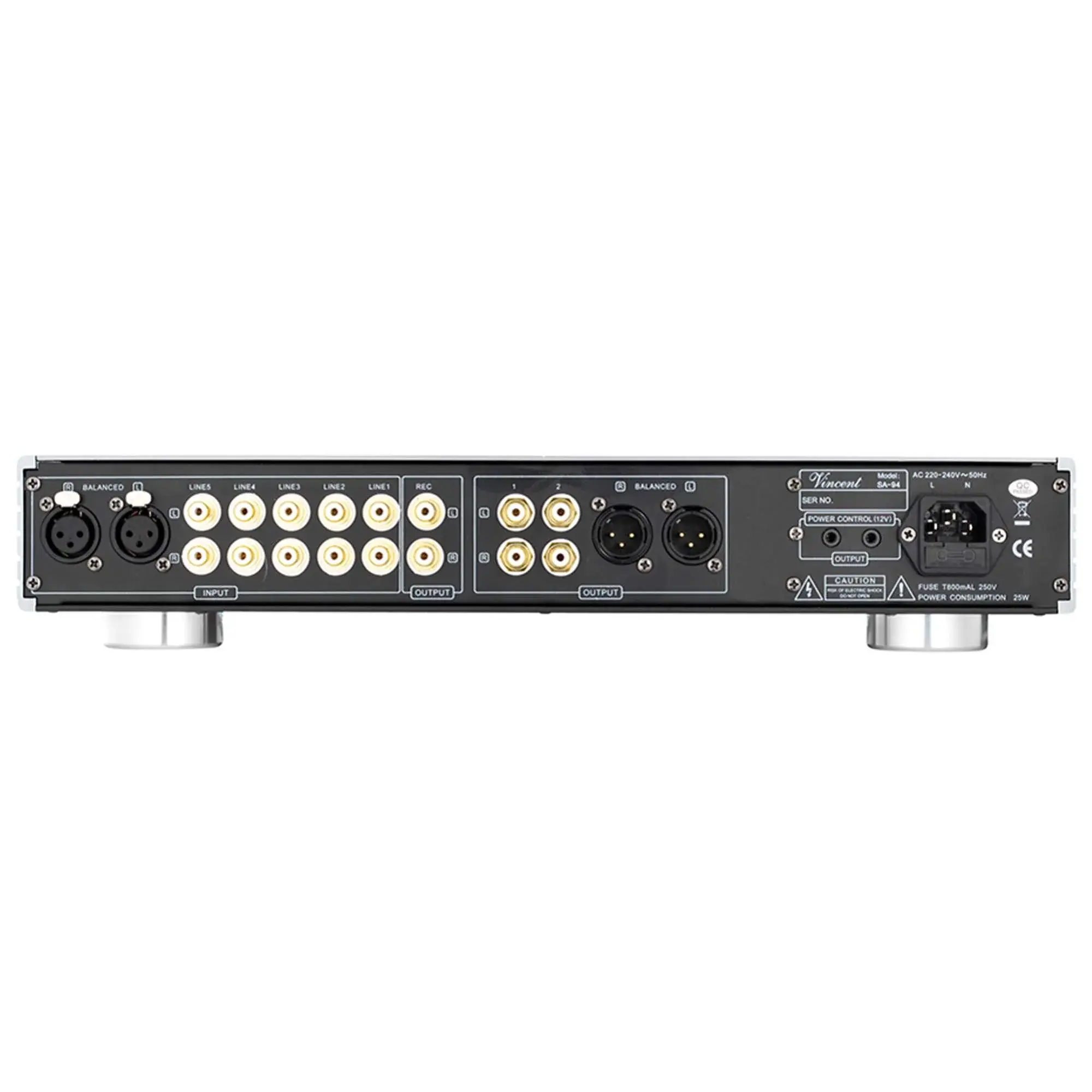 Основная часть усилителя выполнена из металла, что обеспечивает его высокую прочность и долговечность. Конструкция предварительного усилителя Vincent SA-94 включает в себя мощный тороидальный трансформатор, что гарантирует безупречную передачу звука.