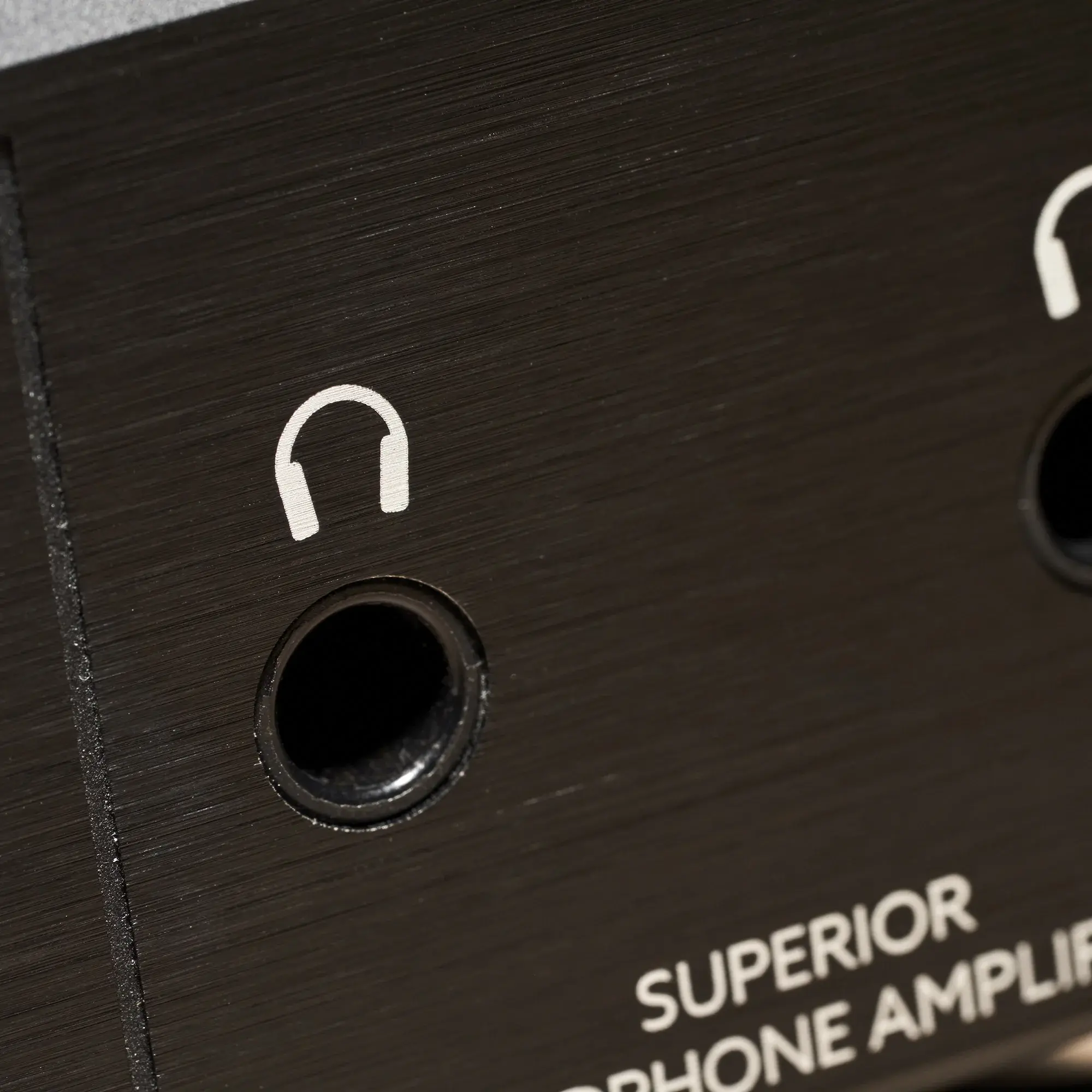 Дополнительные цепи защищают устройства от постоянного тока, перегрузки или перенапряжения и задерживают процесс включения для защиты наушников. Все компоненты тщательно собираются вручную и устанавливаются в тонкий корпус из черного анодированного алюминия с передней панелью толщиной в миллиметр.