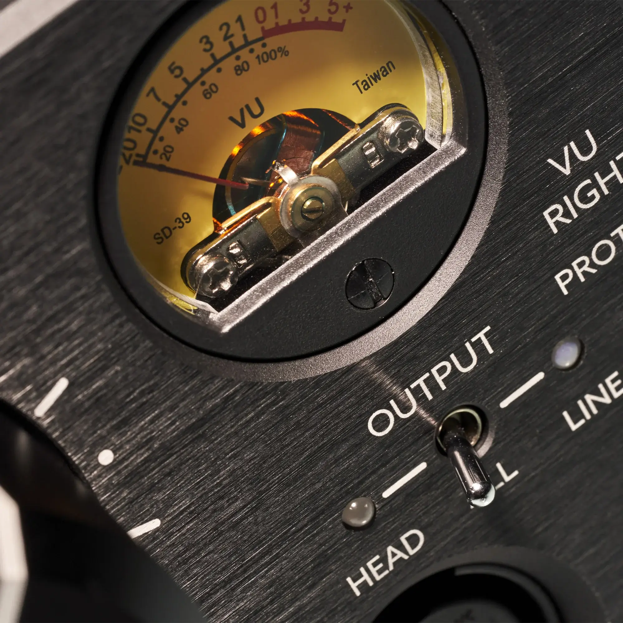 на передней панели размещен VU-метр для отображения уровня входного сигнала;