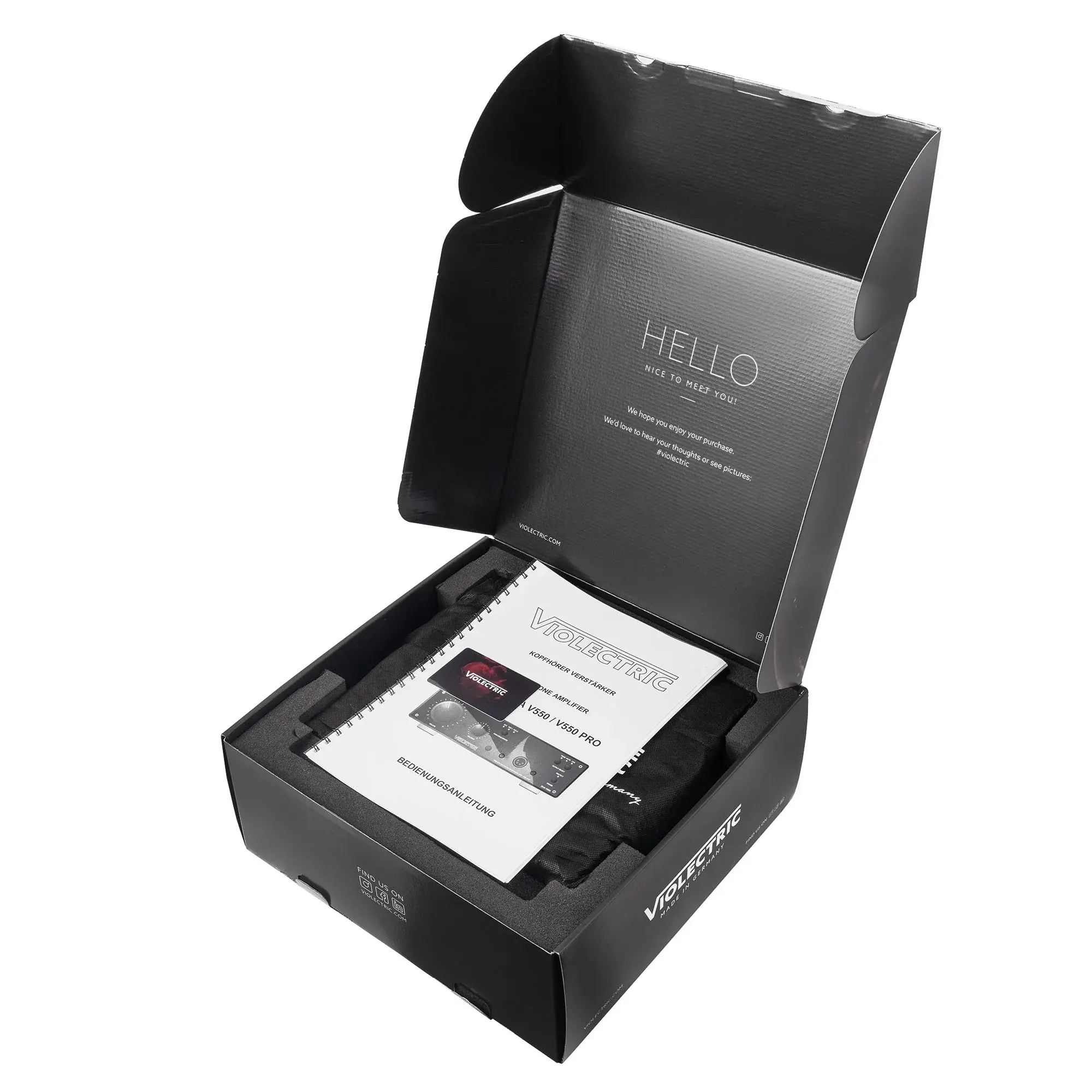 Благодаря инновационных технологиям примененным в усилителе Violectric он стал победителем многочисленных тестов среди усилителей для наушников. Усилитель в HPA V550 был разработан для обеспечения максимального качества звука для наушников с любым сопротивлением. Благодаря технологии оптимизированной специально для динамических наушников, удалось максимально снизить шум в цепи и добиться малого уровня искажений, что бы соответствовать высоким требованиям Hi-End.