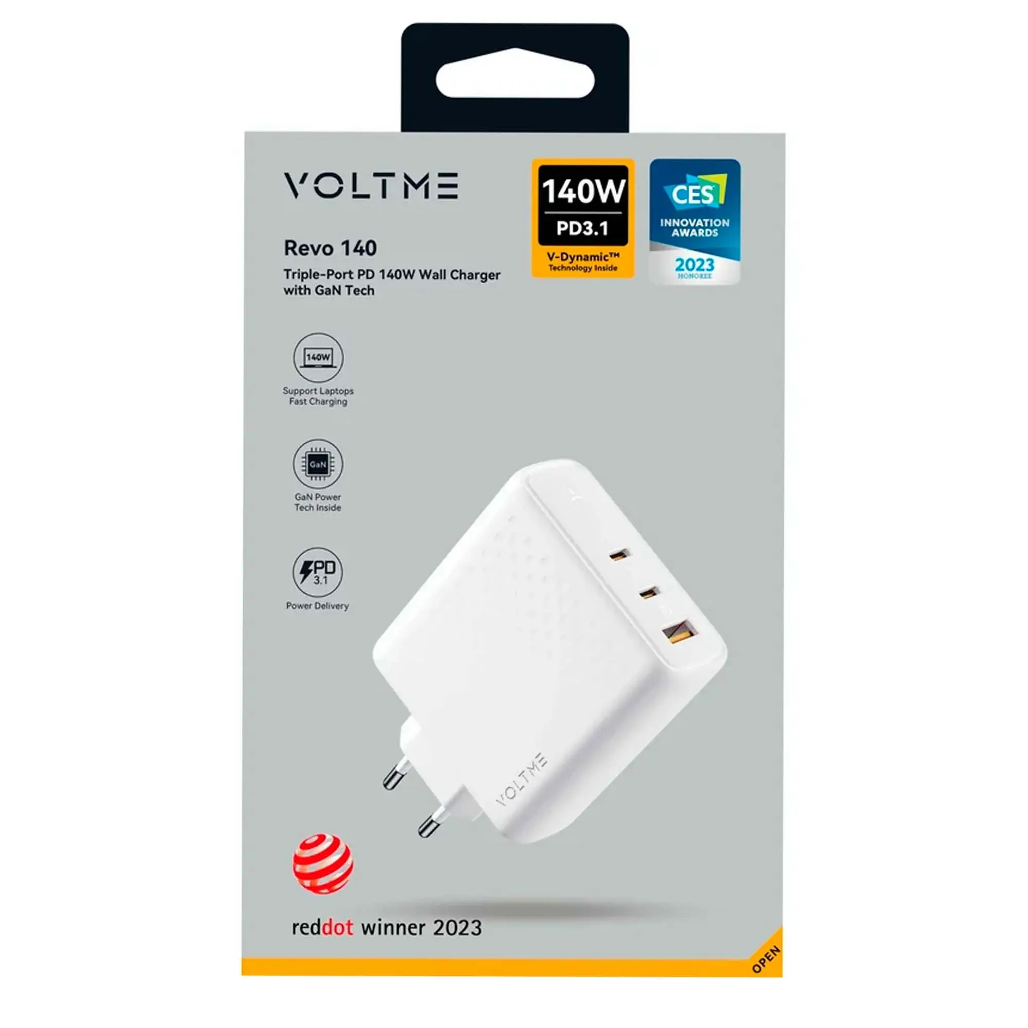 VOLTME Revo 140CCA - сетевое зарядное устройство мощностью 140 Вт, оснащённое технологией GaN (нитрида галлия), представляет собой современное решение для быстрой и безопасной зарядки нескольких устройств одновременно. Это компактный, но мощный адаптер, который подходит как для домашнего использования, так и для мобильных пользователей, нуждающихся в надёжном источнике питания для своих гаджетов.