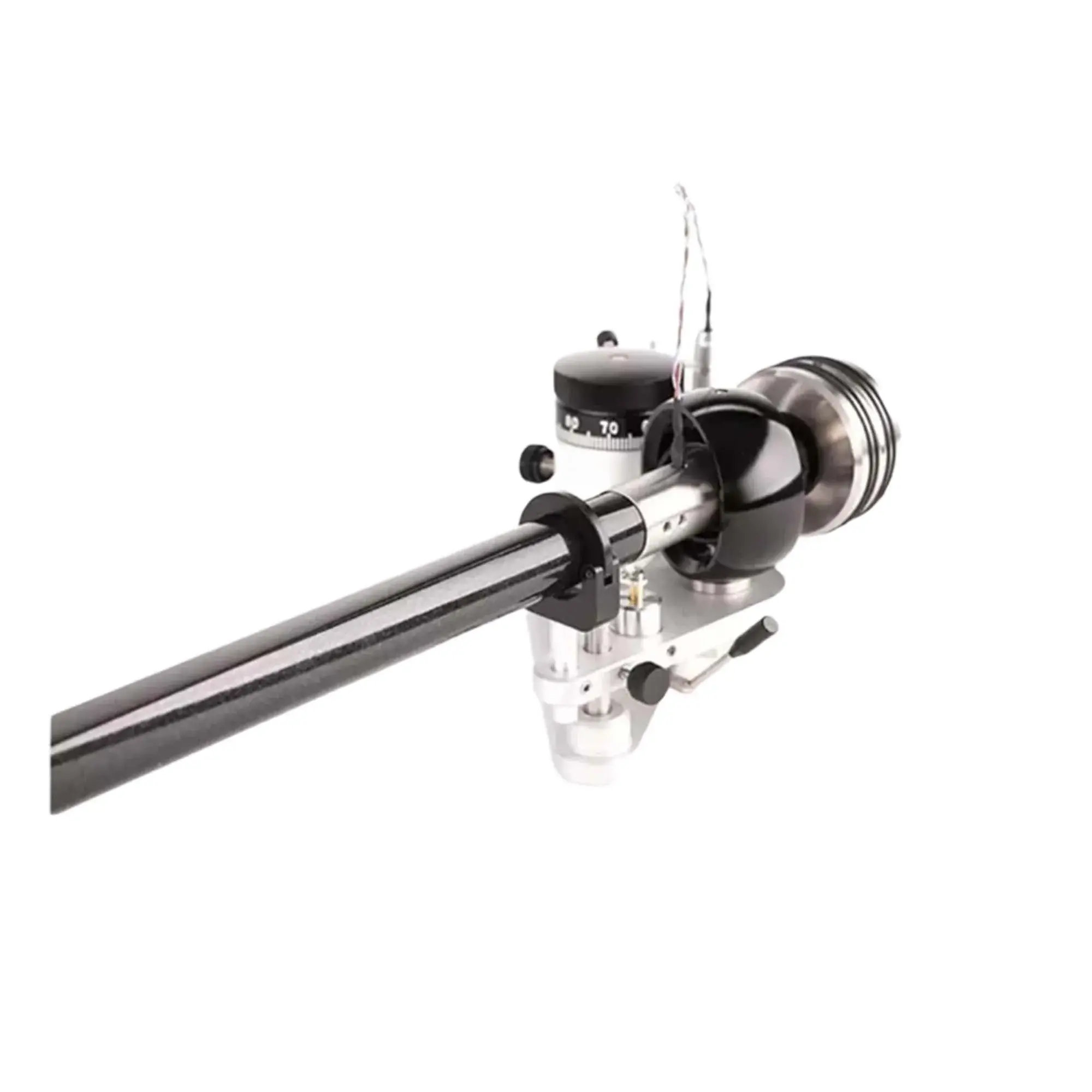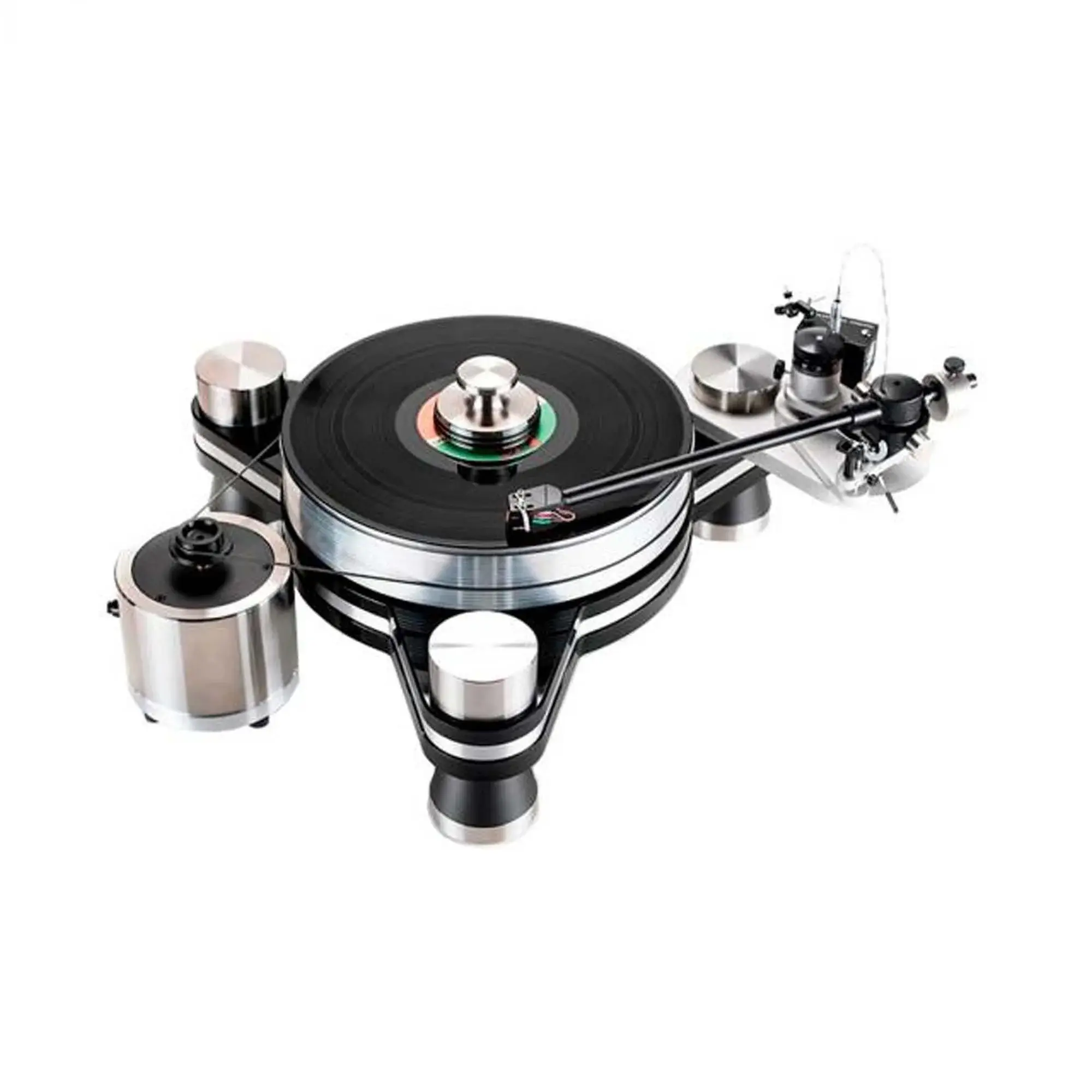 Массивный 50-миллиметровый опорный диск выполнен из специальной немагнитной стали и алюминия и весит 9 кг. Он обладает высокой инертностью, а также такая конструкция диска даёт максимальную жёсткость и демпфирование. Пассик привода проходит по середине подшипника, что сводит к нулю эффект качелей. Алюминиевый диск весом 9.0 кг изготовлен с допуском +/- 0.02 мм из сплава 6061 и имеет окружность 991 мм. Шкив мотора изготовлен с допуском +/- 0.001 мм. Тонарм JMW 12-3D с проводкой VPI из очищенной меди.
