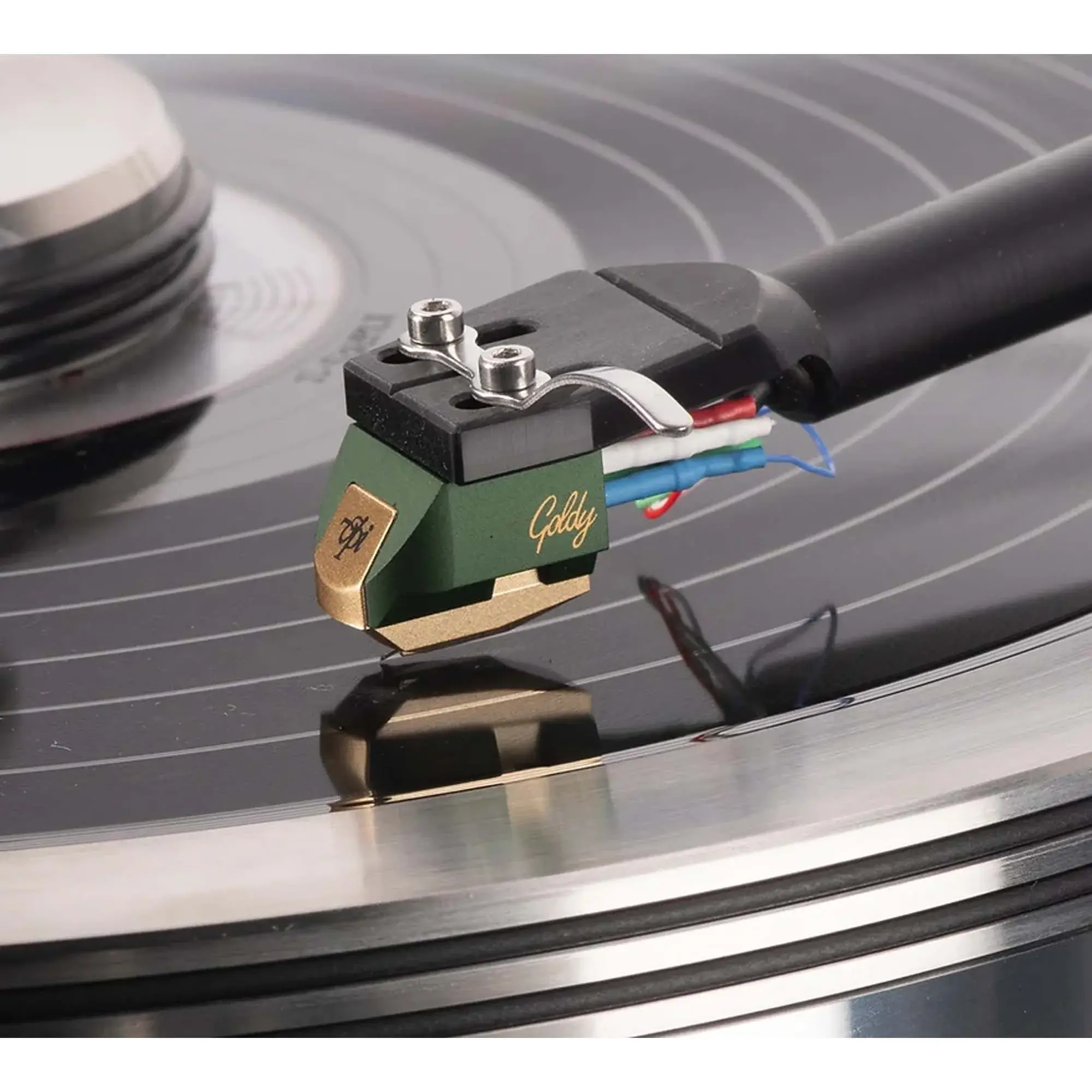 Для комплектации проигрывателей винила высокого уровня необходим достаточно надежный картридж звукоснимателя типа МC, обладающий при этом отличными характеристиками и превосходным соотношением цена/качество. Новинка базируется на модели Audio Technica AT-OC9 и использует иглу с заточкой line contact с кантилевером из бора. Картридж VPI Goldy назван в честь второй дочери президента VPI Industries Мэта Вайсфельд (Mat Weisfeld), Голди. Этот картридж обеспечивает мощный выходной уровень, хорошее разделение каналов, низкие искажения и прекрасный тональный баланс.
