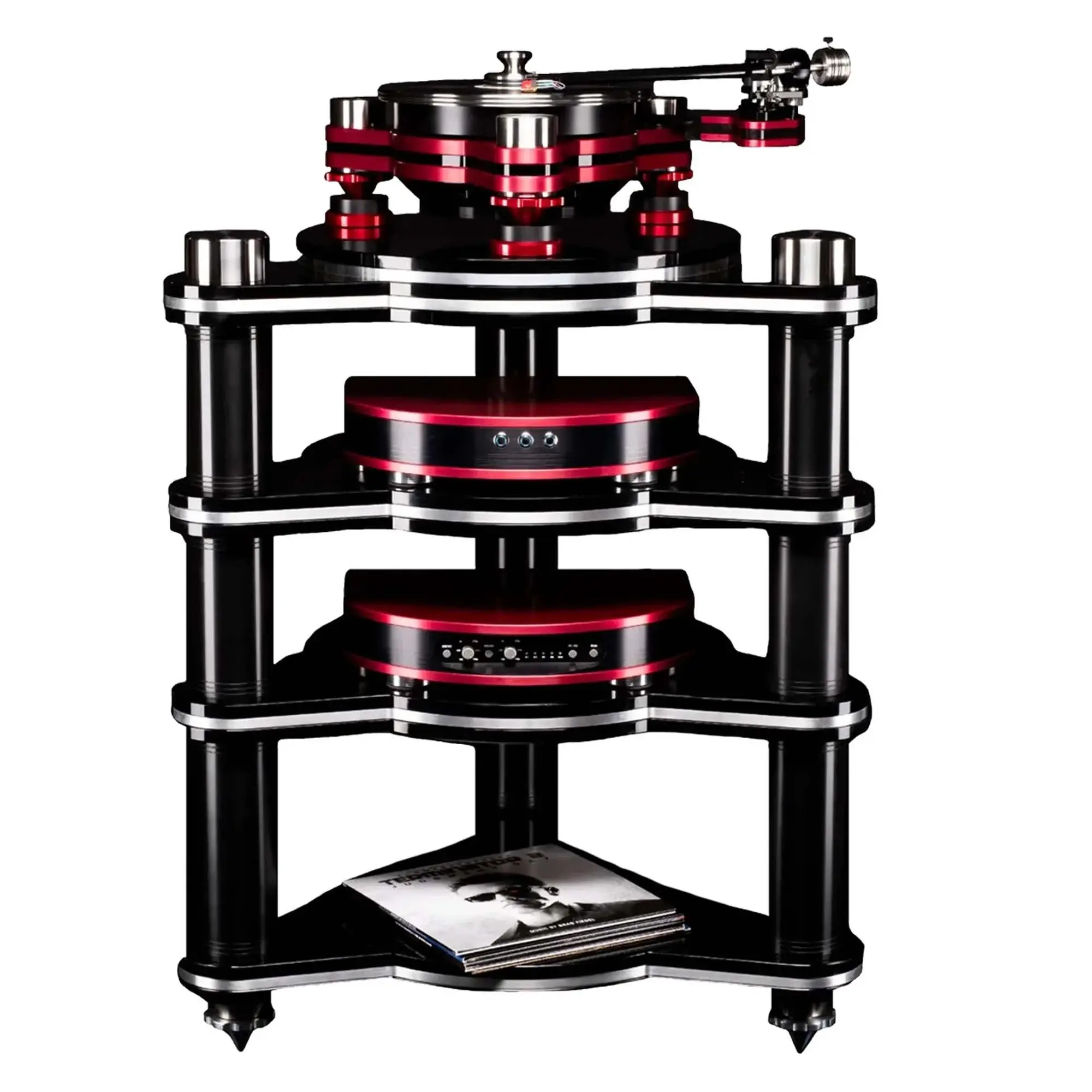 Устройство состоит из трехуровневой стойки, каждый уровень которой механически развязан с остальными. На самом верхнем уровне установлен стол с диском, уровнем ниже — блок питания с системой управления двигателем. Еще один уровень занимает фонокорректор Vanquish Phono Stage, разработанный на базе Voyager.
