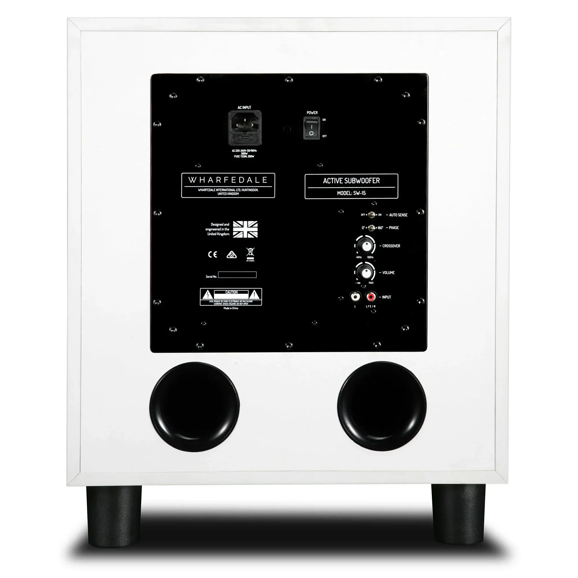 Динамик подключен к мощному усилителю класса D, который был разработан специально для использования в сабвуферах компании. Благодаря использованию эффективной импульсной технологии усилитель практически не нагревается при работе, что повышает надежность работы устройства. Усилитель работает в балансном режиме для снижения уровня помех и повышения отдачи в низкочастотном диапазоне. Wharfedale SW-15 оснащен RCA входом, работающим в режиме стерео/моно.