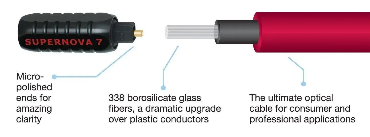 Supernova 7 Glass Toslink Optical может использоваться как альтернатива для передачи цифрового аудиосигнала. По сравнению с обычными медными кабелями имеет целый ряд значительных преимуществ.