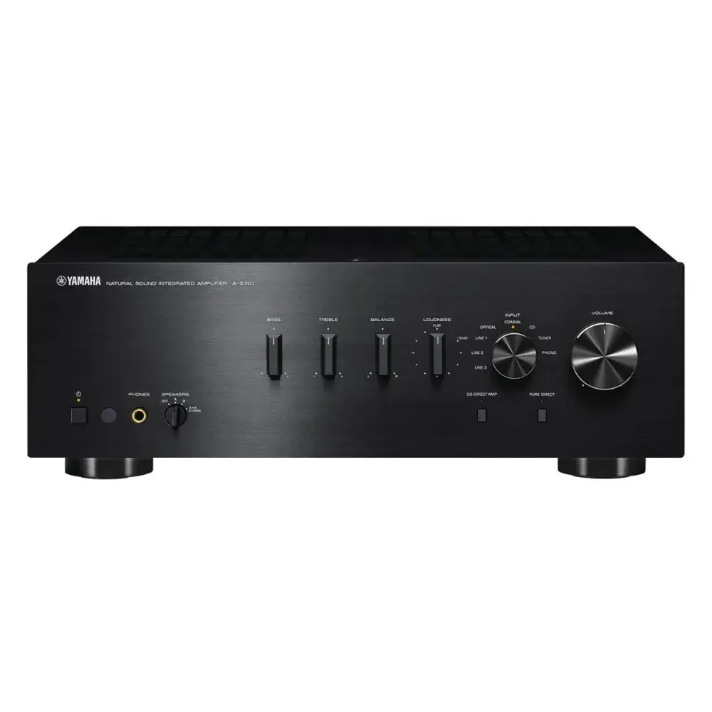 В блоке питания Yamaha A-S701 задействованы буферные конденсаторы емкостью по 12000 мкФ и массивный заказной трансформатор. Для охлаждения используются крупные радиаторы из экструдированного алюминия. В цепях установлены тщательно подобранные и протестированные элементы, в том числе качественные реле, одноточечная заземляющая система, выполненные по специальному заказу конденсаторы и прочие высококлассные комплектующие. Усилитель обладает мощностью в 100 Вт на канал при работе в связке с 8-омными акустическими системами и может развивать максимальные 160 Вт на канал при 4 Ом.