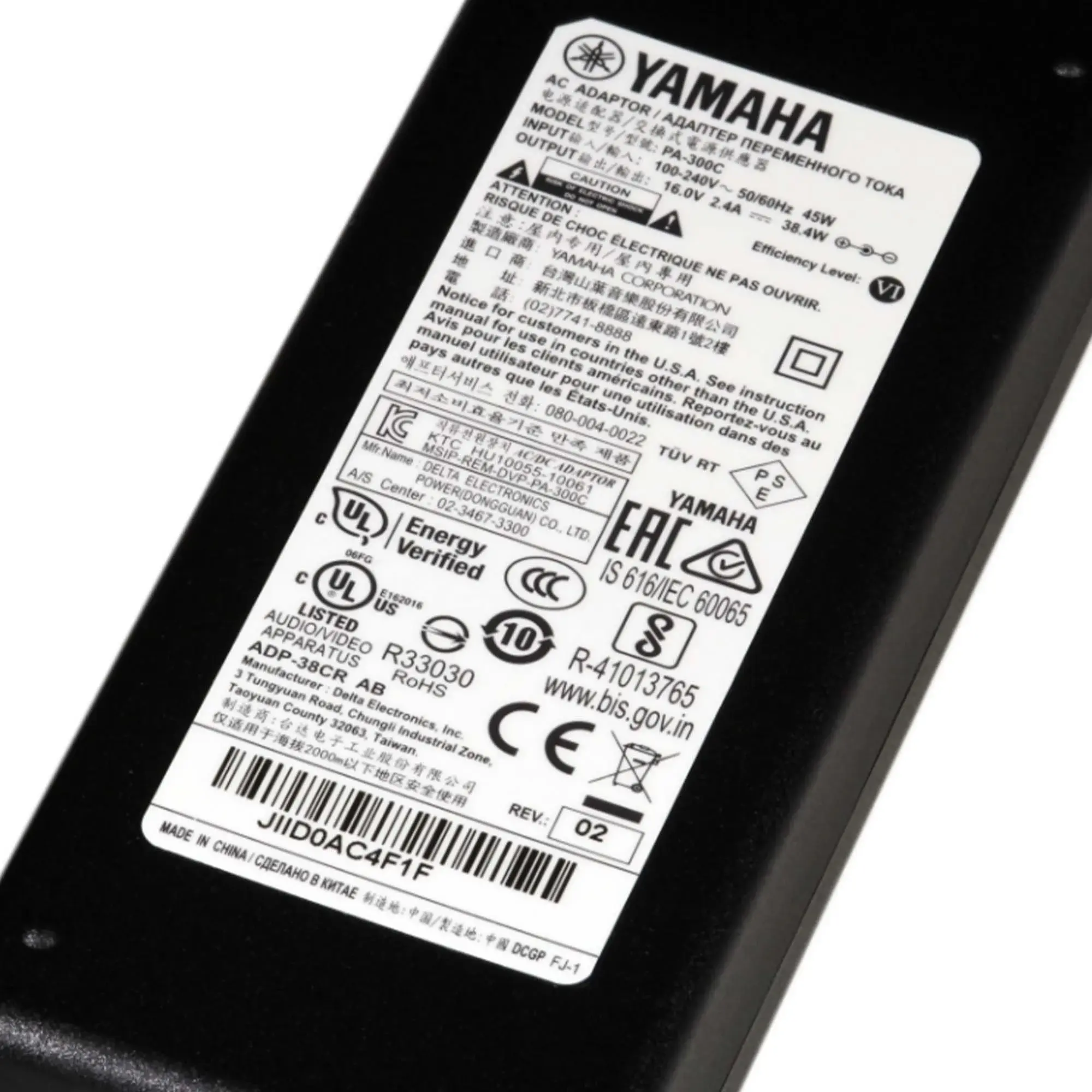 Yamaha PA-300C - внешний сетевой адаптер (блок питания) для клавишных инструментов Yamaha. Стандарт вилки зависит от региона продажи адаптера. Предназначен для использования в электросетях напряжением 100-240 В/50-60 Гц. Выходное напряжение составляет 16 В, сила тока 2400 мА.