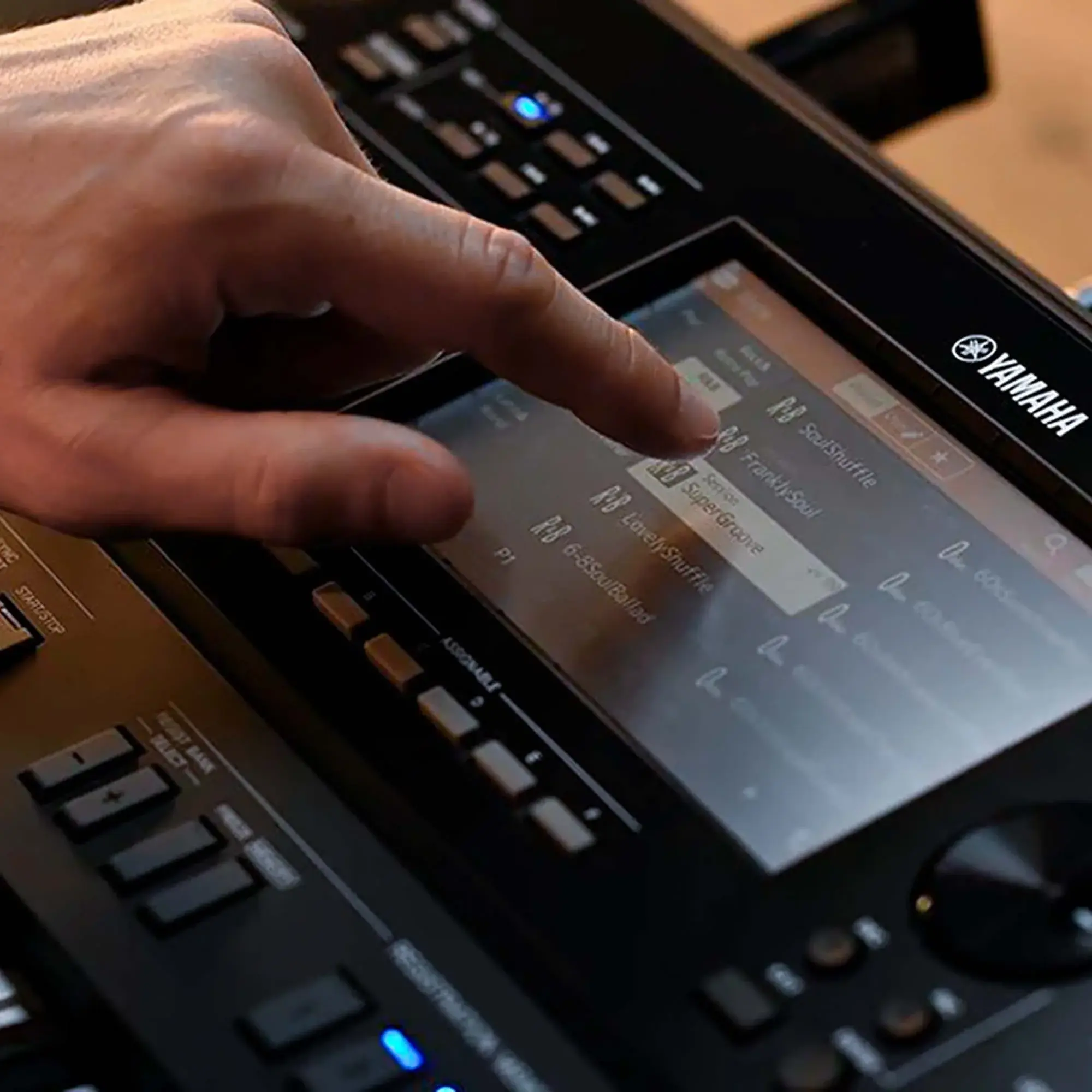 PSR-SX720 оснащен 7-дюймовым сенсорным дисплеем, идеально расположенным для удобного просмотра, как при игре стоя, так и сидя. Интуитивно понятный графический интерфейс обеспечивает полный контроль над мощными функциями инструмента. Новые кнопки с улучшенной цветопередачей обеспечивают лучшую видимость во время выступления, а контроллеры Live Controller и Master Volume оснащены ярким индикаторами для мгновенной проверки положения.