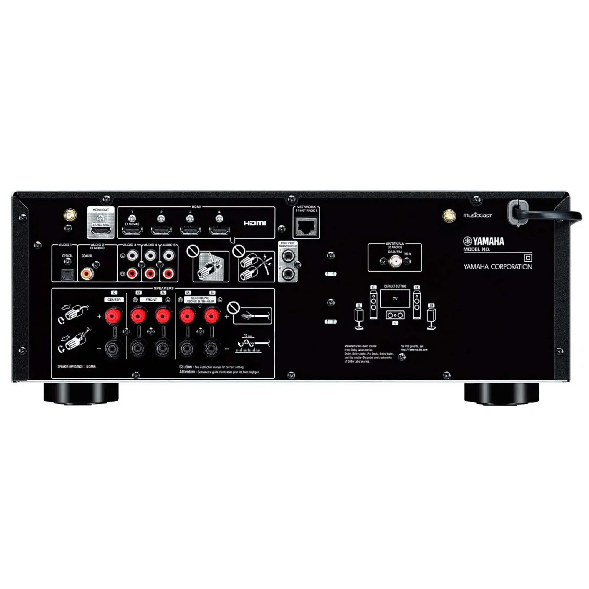 Yamaha RX-V4A имеет конфигурацию 5.1 и развивает мощность до 115 Вт на канал. Схемотехника усилителей в данной модели была полностью переработана для того, чтобы обеспечить максимальную скорость нарастания выходного сигнала – это является критически важным для получения динамичного и убедительного звука в домашнем кинотеатре. Кроме того, в данной модели используется фирменная технология Cinema DSP 3D, которая позволяет получить впечатляющее окружающее звуковое пространство, как в настоящем кинозале.