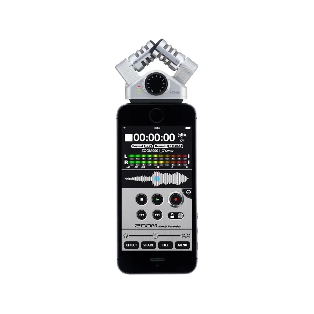 Приложение Zoom Handy Recorder, которое доступно для скачивания из App Store, добавит богатый набор возможностей вашему iQ6 и iOS-устройству. Вдобавок к управлению уровнями на экране устройства, оно позволит вам регулировать громкость наушников, подключенных к вашему iQ6, а также применять автоматические наборы настроек, которые будут полезны при записи встреч, речей, интервью и других подобных ситуаций, когда вам нельзя упустить ни слова. Выбирайте формат PCM для записи в наивысшем качестве или формат AAC, если вам важна экономия свободного места. Кроме того, вы можете применять компрессию, настраивать эквалайзер и эффекты реверберации. Данное приложение даже позволит вам отправить получившиеся записи по электронной почте или загрузить их на музыкальный сервис SoundCloud.