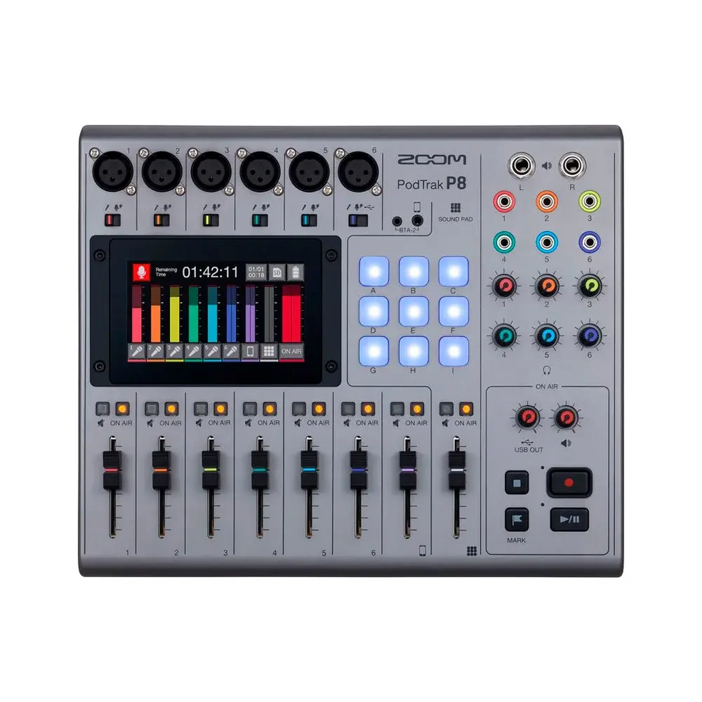 Новый аудиорекордер Zoom PodTrak P8 легок в использовании и способен взять на себя даже самые амбициозные подкасты. В его арсенал возможностей входят все необходимые функции для записи, редактирования и микширования, что делает P8 вашей полноценной студией для подкастинга.