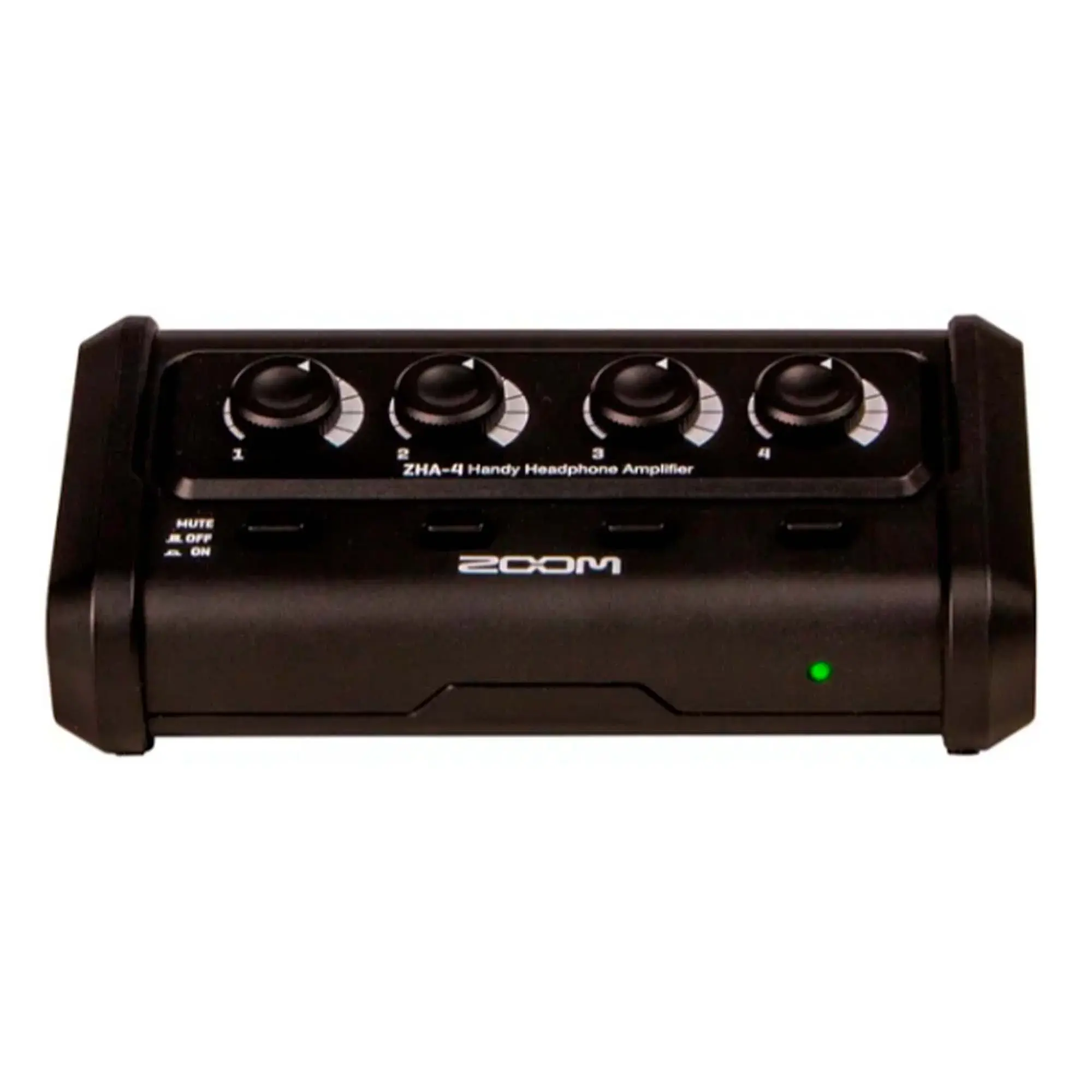 Zoom ZHA-4 - компактный усилитель на четыре пары наушников. Устройство разделяет один стереовыход для наушников на четыре отдельных разъема для наушников 1/8 дюйма, каждый из которых имеет собственный регулятор громкости и отключение звука.